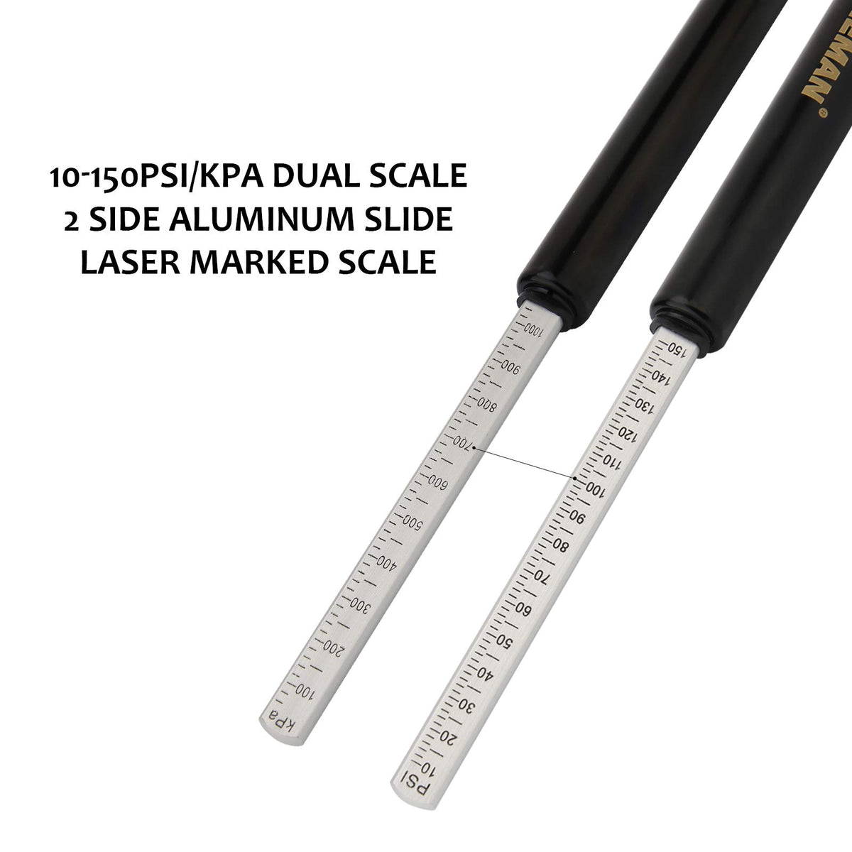Q: What is the maximum pressure capacity of the Slime Tire Gauge?A: The Slime Tire Gauge can measure up to a maximum pressure of 160 psi, making it suitable for various vehicles including cars, trucks, and SUVs.
