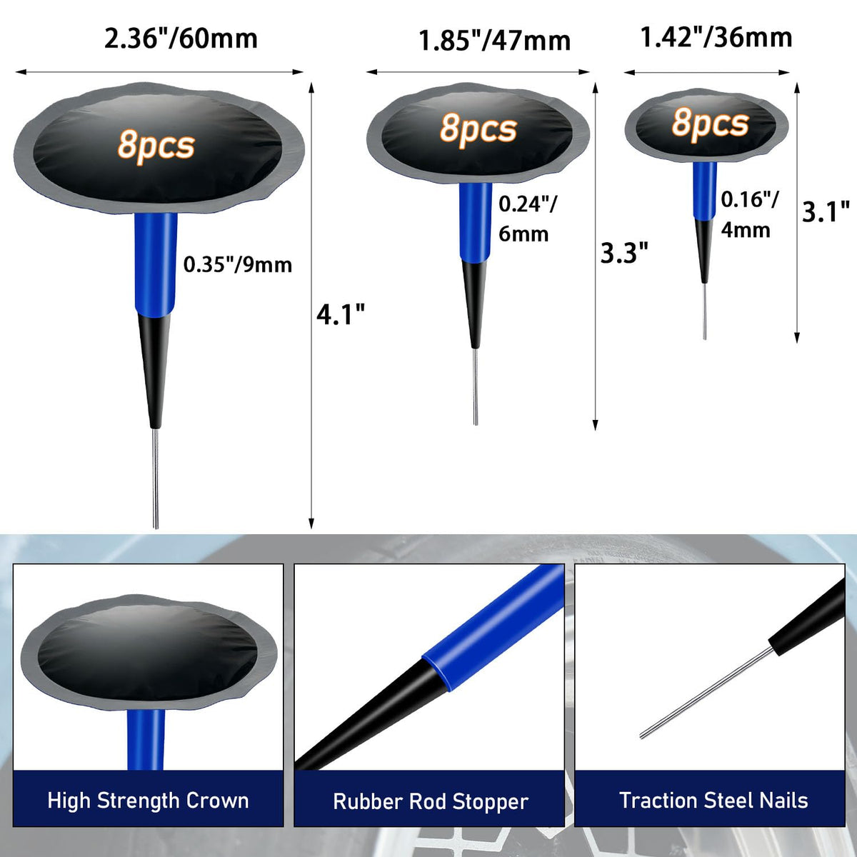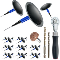 Socpuro Tire Repair Patch Tool Kit Including 24pcs Tire Patch Plugs, Tungsten Buffing Wheel, Tire Patch Roller with 4mm Twist Dr