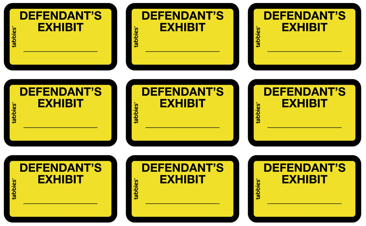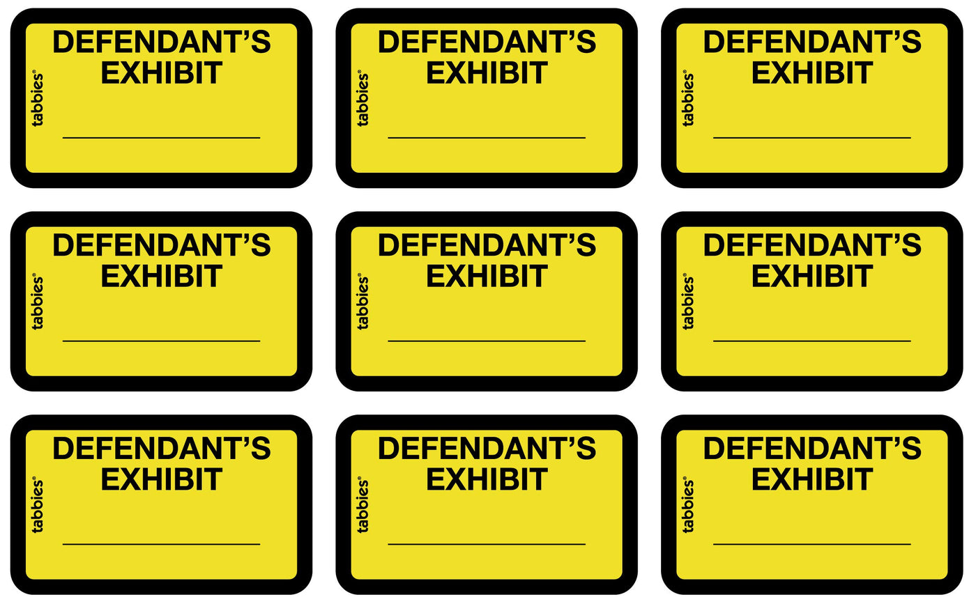 Tabbies Legal Exhibit Labels, Label: 1-5/8''W X 1''H, Sheet: 5-1/4''W X 3-1/4''H, Yellow, Defendant'S Exhibit'' 252 Labels/Pack