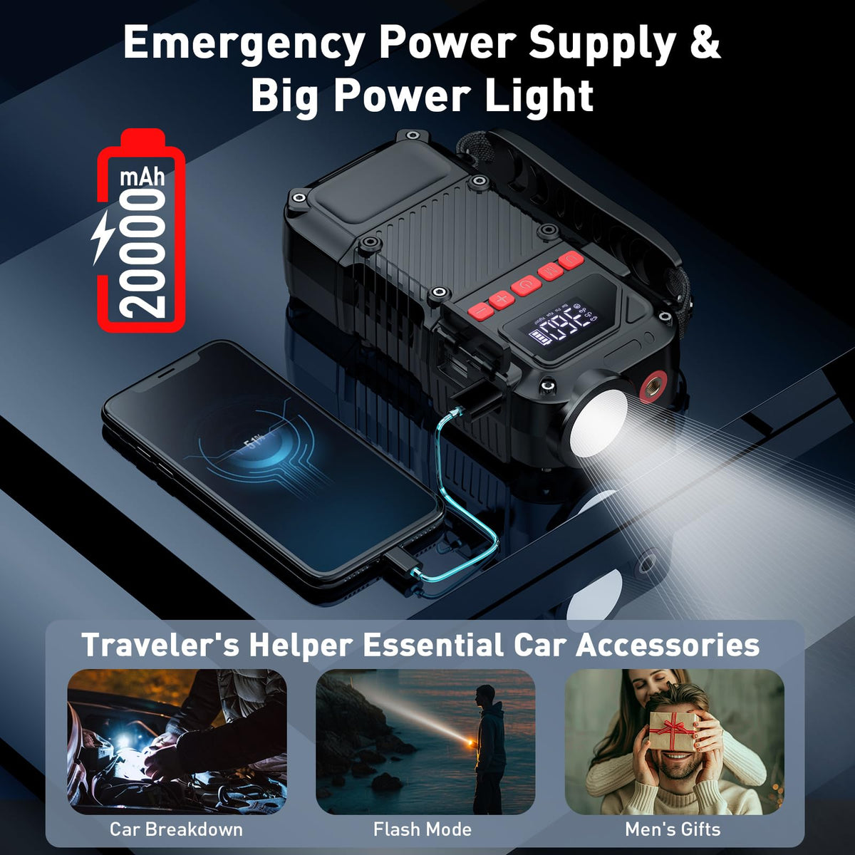 Tire Inflator Portable Air Compressor - 20000Mah Portable Air Pump, 150 Psi Tire Pump With Led Light, Lcd Screen, Portable Tire