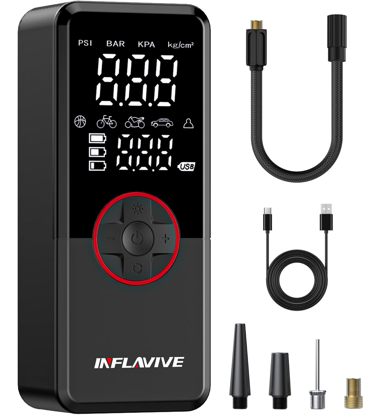 Tire Inflator Portable Air Compressor, Inflavive Cordless Electric Bike Pump 150Psi Fast Inflation With Led Light, Pressure Gaug