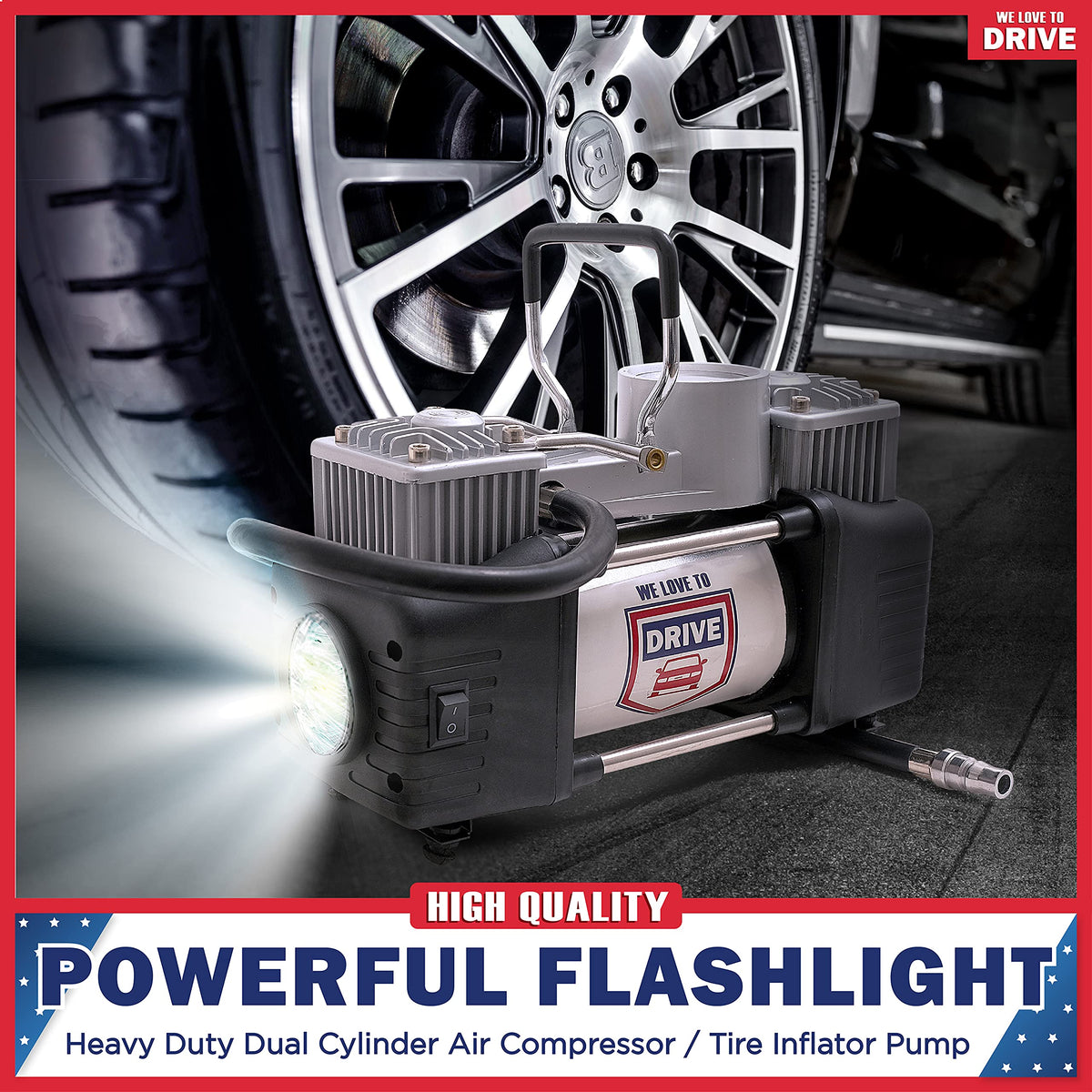 Tire Inflator Portable Air Compressor With Tire Repair Kit - 12V Dc Dual Cylinder Air Pump For Car Tires, 150 Psi Tire Pump With