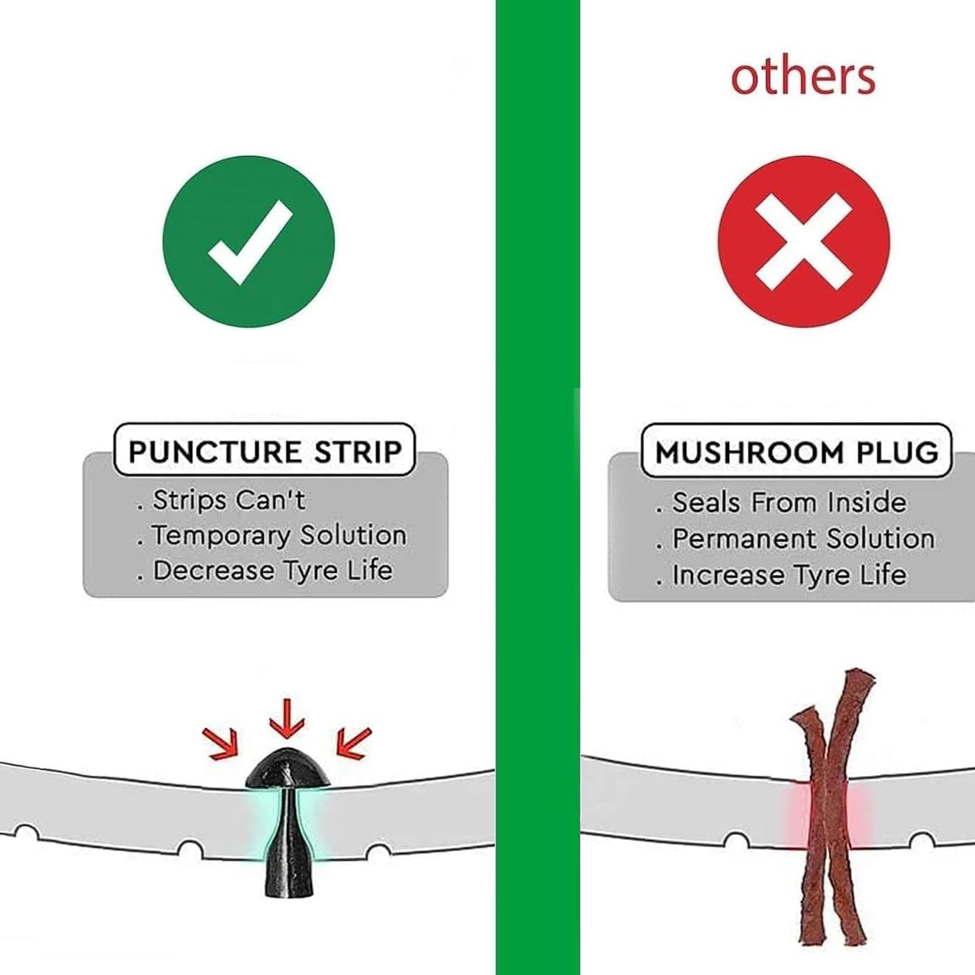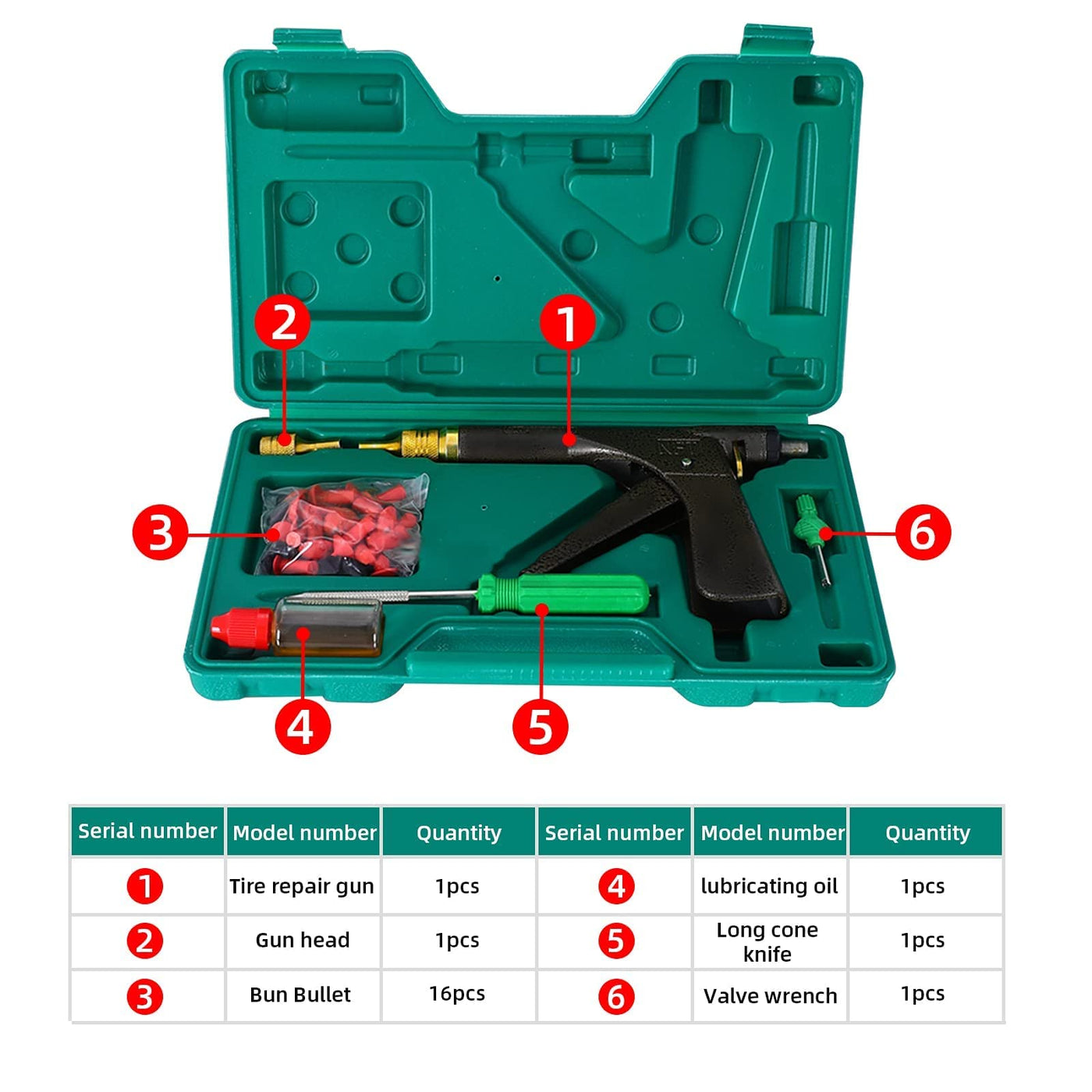 Package Include: 1 x Tire Plug Gun 1 x Long Cone Knife 1 x Cartoon Board 2 x Nozzles 1 x Pack of Bullets (8 Mushroom Plugs and 8 Insert Plugs) 1 x Bottle of Lubricant 1 x Instruction Material: The tools are mainly made of high-quality metal materials, and the rubber butyl is rubber products Weight: 1090g Permanent Solution to Puncture: Forget the conventional sticky strips and switch to our Mushroom Plugs that provide a permanent solution to your Flat Tire. The head of the mushroom plug fixes the puncture from inside and the stem of the plug seals the line of puncture thus providing a permanent solution. Better Than Conventional: The Mushroom-shaped plugs provide the ultimate solution to all tubeless tire puncture. The mushroom plugs are made of a unique combination of rubber that does not wear out with time as compared to the conventional puncture strips. How to Use Them: 1. Find the puncture and remove any nail/needle from the affected area. 2. Use a reamer to clean any burr or wires from the puncture hole. 3. Push the mushroom into plugger with the help of nozzle without touching the head. 4. Load the Mushroom plug into the Gun tool from the top. Make sure it goes completely inside the Gun tool. 5. Insert the Nozzle into tire using the Probe tool. Unscrew the probe tool to leave the nozzle in the tire. 6. Trigger the gun to fix the puncture until it stops. 7. To remove the Gun and nozzle from the tire- push the button at the end of the Gun pull out then gun from the tire. 8. The puncture hole is now fixed with the Mushroom Plug. 9. Inflate the tire and cut out extra stem of Mushroom Plug.