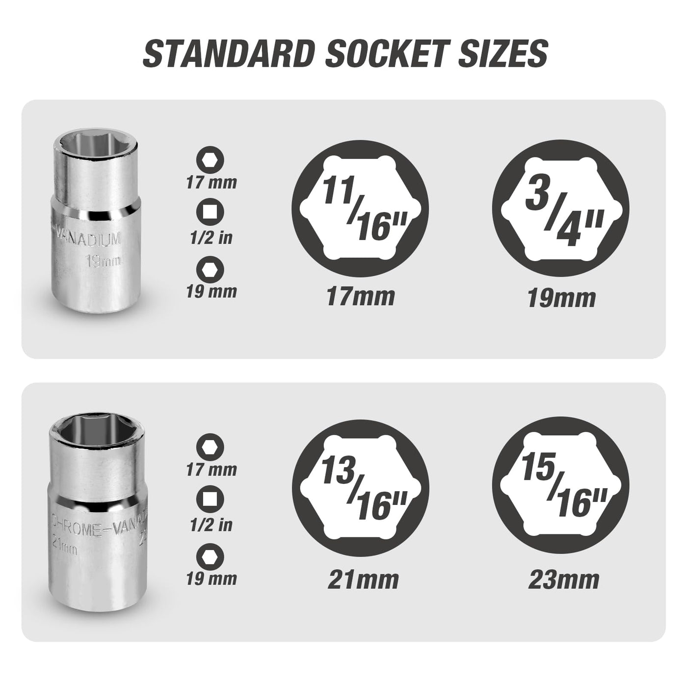 Torin's telescoping lug wrench has four socket heads including 11/16'', 3/4'', 13/16'', 7/8'' and is made from forged heat treated carbon steel. This tire iron is suitable for cars, SUVs, trucks and vans.