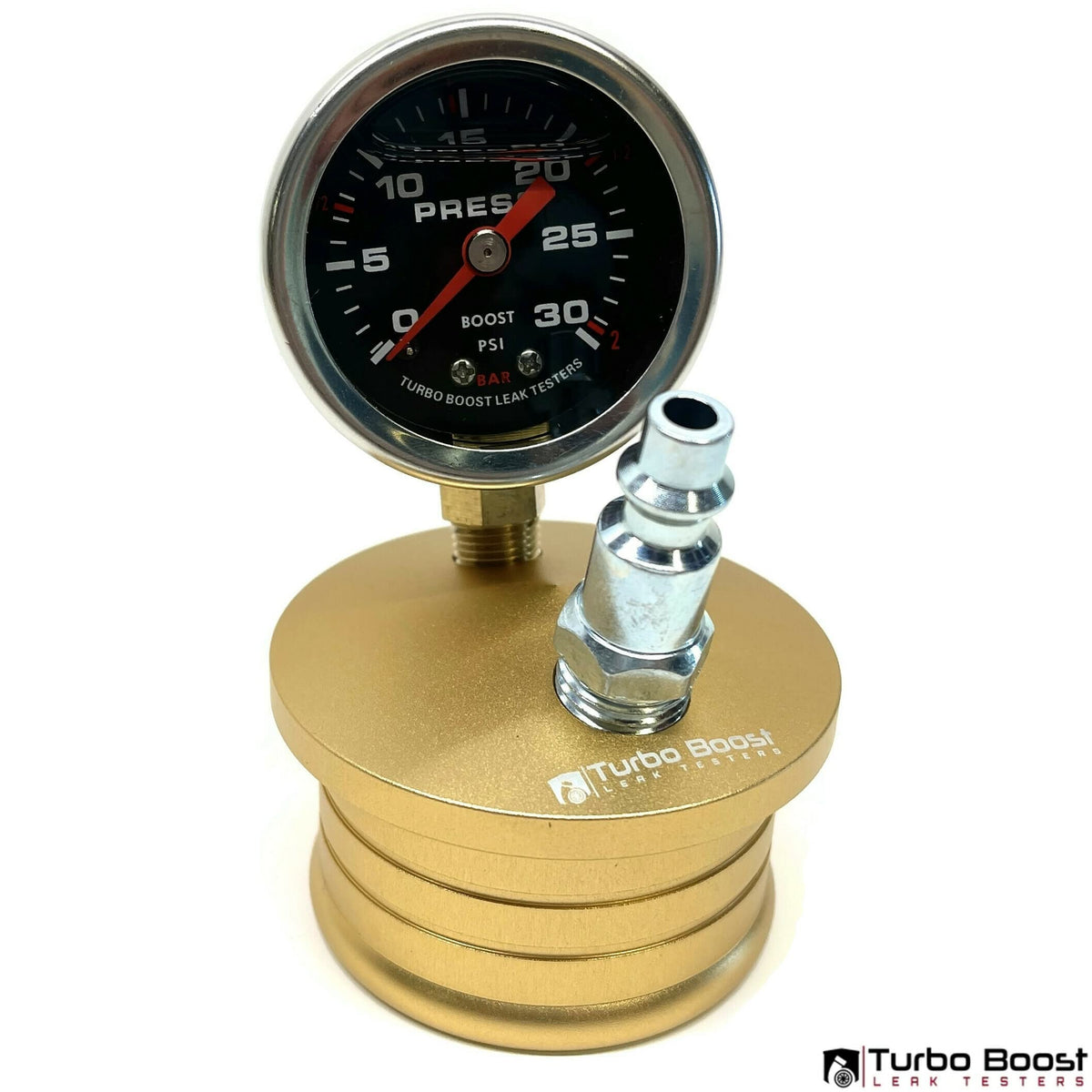 Get Your Boost Back And Get Full Performance From Your Turbo! This Boost Leak Tester Is Designed To Fit Over The Inlet Flange Of Your Turbo Charger And Allows You To Pressurize The Charge System With Compressed Air While The Vehicle Is Off. This Is An Important Tool Every Turbo Car Owner Needs In Their Arsenal Of Tools. It Will Keep The Turbo Healthy By Eliminating Leaks In The Boost Path And Not Allowing It To Over Speed Compensating For A Boost Leak. A Must If You Are Tuned Or Any Time You Are Replacing Any Components In The Intake Tract Such As Charge Hoses, Intercooler, Manifold, Vac Lines, Injectorsetc. Also A Must If You Are Going To The Track And Want The Peace Of Mind That The Turbo Wont Over-Work Or Risk Blowing Any Hoses Off That Are Loose Why Have The Gauge? Not Having A Gauge Readout On A Boost Leak Test Is Similar To Filling Air In Your Car'S Tire Without A Gauge. You Just Don'T Know How Much Air Is In The System! Its Wise To Know How Much Pressure Is Actually Going Into The Charge System To Prevent Damage To The Engine And To Yourself. For Example, If The Compressor Is Unregulated (Ex. Shop Air At 90 Psi) There Is A Risk That You Can Over-Pressurized And Something Will Give. Benefits Of Gauge: 1. Allows You To Apply A Safe Amount Of Pressure To Prevent Injury Or Damage 2. Read How Fast The System Holds And Bleeds Air 3. Gives A Good Comparison Of Compressor Outlet Air Vs. Boost Test Air While Pressurizing. (Lower The Difference The Better) Design Features: 2'' Aluminum End Cap - Drilled And Tapped, 1/8'' Npt Threaded Gauge Port & Fitting Port Silicon Coupler - High Quality 4 Layer Boost Gauge - Custom Stainless Steel 30 Psi / 2 Bar - 30 Psi Range Will Give You The Appropriate Reading When Testing Your Charge Pipes For Low, Medium Or High Boost Levels.