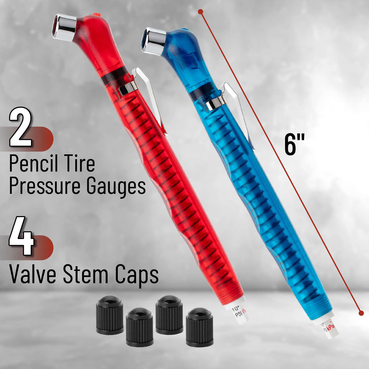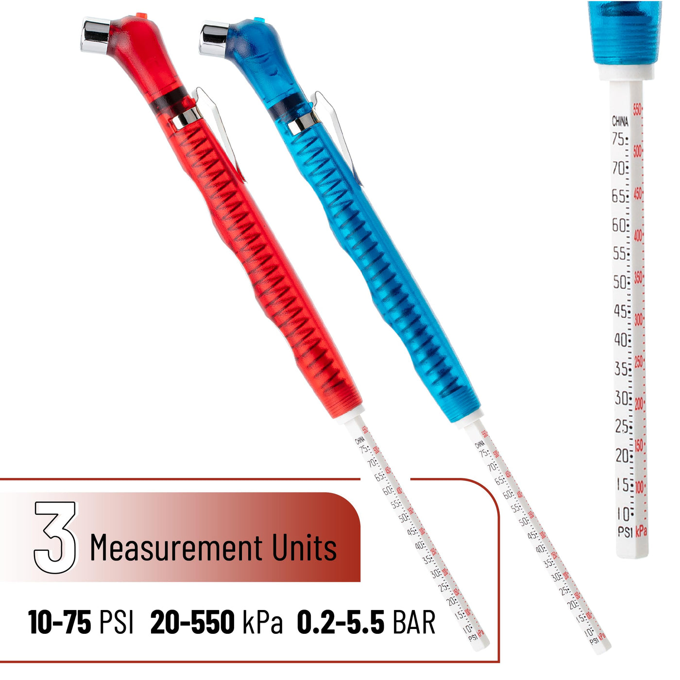 Unco- Pencil Tire Pressure Gauge, 2 Pack, Blue & Red, 10-75 Psi, Tire Gauges For Tire Pressure, Tire Gauge, Air Pressure Gauge F