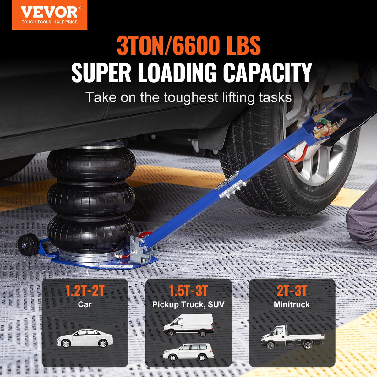 Vevor Air Jack, 3 Ton/6600 Lbs Triple Bag Air Jack, Airbag Jack With Six Steel Pipes, Lift Up To 17.7'', 3-5 S Fast Lifting Pneu