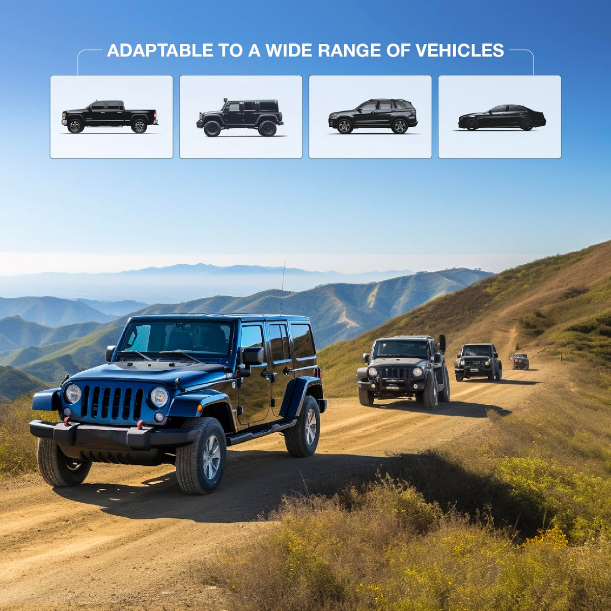 Q: What types of vehicles is the VIAIR 450P Automatic Portable Compressor compatible with?A: The VIAIR 450P Automatic Portable Compressor is designed for use with trucks, jeeps, SUVs, and cars, and can inflate tires up to 42 inches in diameter, making it ideal for both off-road and on-road vehicles.
