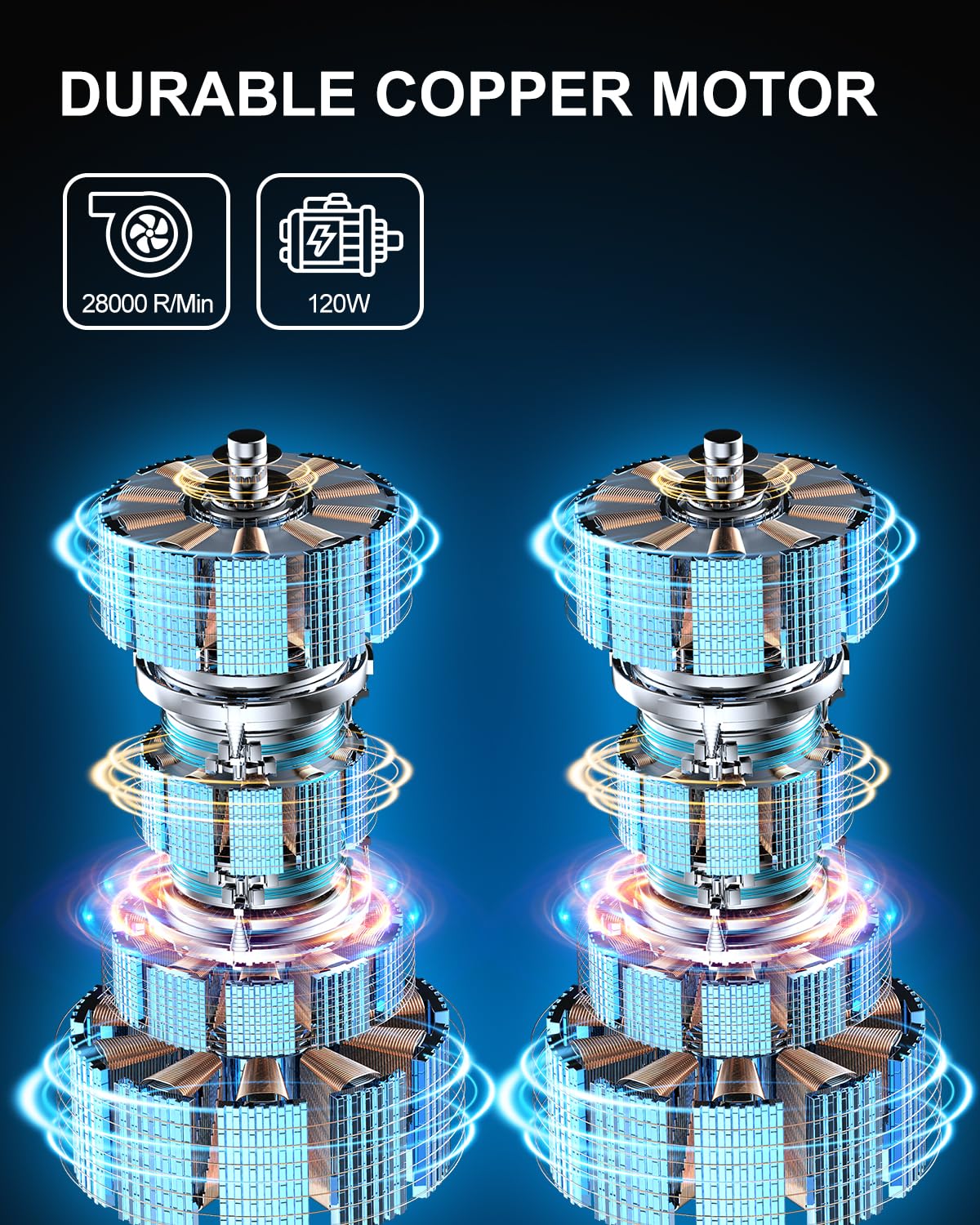 Fast inflation: Equipped with a 21V powerful battery and a handheld design, you can easily pick it up and inflate your tires without running wires. Easily pull the trigger to start and stop your inflation. Tires sizes like 195/65R15 can be filled in 45S. Powerful and Durable: Constructed with a robust metal cylinder and gear, it inflates 5x faster, has +30% more power, and durable than regular pumps. With a max pressure of 150psi, it can work continuously for 30 minutes, easily handling four tire inflations at once. Digital Display Gauge: Support 4 unit switching (BAR, KPA, PSI, KG/CM2). Turn the knob to easily set your target air pressure. The digital gauge monitors the air pressure in real time during the inflation process and will automatically shuts off when the target air pressure is reached. Rechargeable Li-ion Battery: The 21V rechargeable lithium battery can serve as an emergency power supply. Come with a power charger, the battery can be fully charged in just one hour.