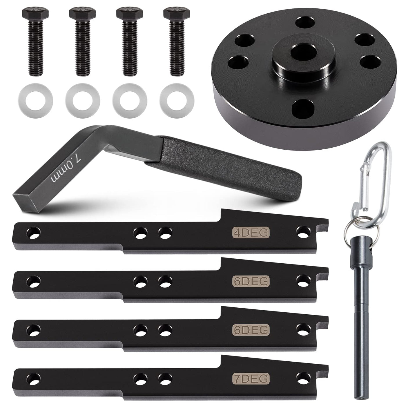 Q: Is the Cam Timing Tool Kit durable and built to last?A: Yes, the kit is made from premium-grade CNC machined heavy-duty steel, featuring anti-corrosion and anti-rust properties, ensuring high durability and a longer service life.