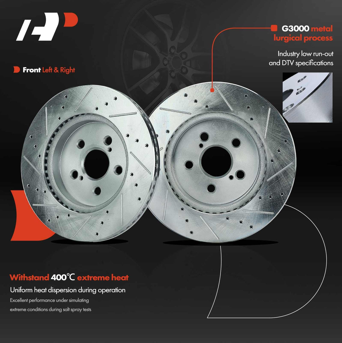 A-Premium 11.15 inch (283.1mm) Front Drilled and Slotted Disc Brake Rotors + Ceramic Pads Kit Compatible with Select Toyota Mode