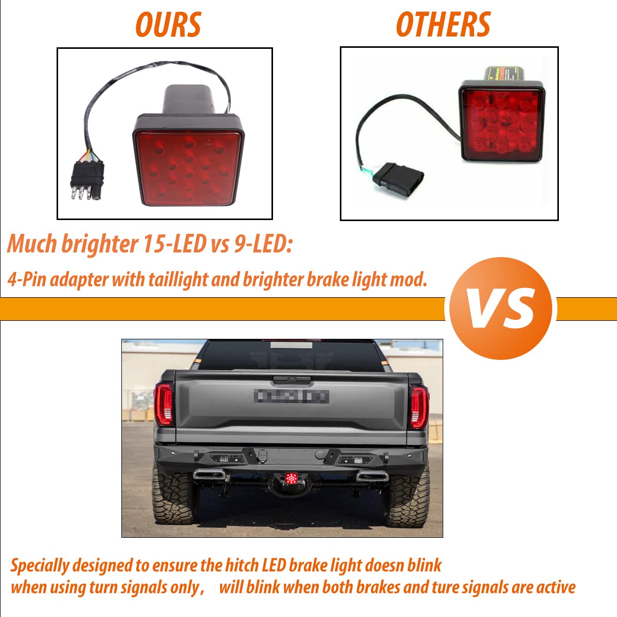 This Listing Features 1Pc Led Tow Hitch Driving & Brake Lamp Universal Fit All Pickup, Trucks, Suv, Jeep With Class Iii 2'' X 2'' Hitch Receiver.Fit Class Iii Iv V Towing Hitch Receiver Port.Interchange Part Number: 2-Inch Towing Receiver Opening Led Lighting For Truck Suv, Fit Class Iii Iv V Towing Hitch Receiver Port, Fit Rear Square Tow Hole 3Rd Third 4Th Forth Led Brake Lamp, Improve Safety At Night When You Are Not Using The Hauling, Super Bright Red Led As Taillight Tail Running Brake Stop Lamp, Unlike Others, Our Ones Have Tail And Brake Light Function, Using The Standard 4-Pin Adapter (Not The Round Shape Socket)Oe/Oem Part Number:Fit Class Iii Iv V Towing Hitch Receiver Portfeature:Lens Color: Redlight Color: Redhousing Material:Made Of High Quality Base W/ Red Lenstype:Comes With Four Way Connector That Provides Running Light, Brake Light Functionswaterproof: Ip67Voltage:12V Dc; Lamp Size: 3-1/4 X 3-1/4 Inches To Fit 2'' Standard Tow Hitch And Function As Tail Brake Light Or Rear Fog Lightinstallation Position: Hitch Receiveruse Notes: The Trailer Hitch Mounted Led Tail Brake Light Will Not Blink While Your Turn Signals Are Exclusively In Use. However, It Will Blink If Both Your Brake Lights And Your Turn Signal Lights Are Active.Please Make Sure You Have Available Space In Your Car For These Lights To Fit Before Placing Order.Note: Professional Installation Is Highly Recommended!