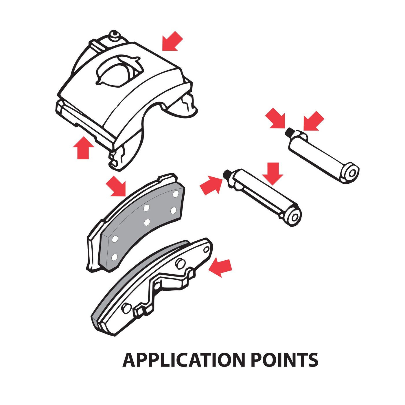 Sil-Glyde Brake Lubricant stops disc brake squeal, and it won't burn off like pink/blue adhesive material. It is moisture-proof, compatible with rubber, and recommended for the entire brake assembly (including pads, caliper slides, piston bores, mounting bolts, boots, seals, and backing plate contacts). The lubricating properties also make it easier to rebuild and assemble the components.