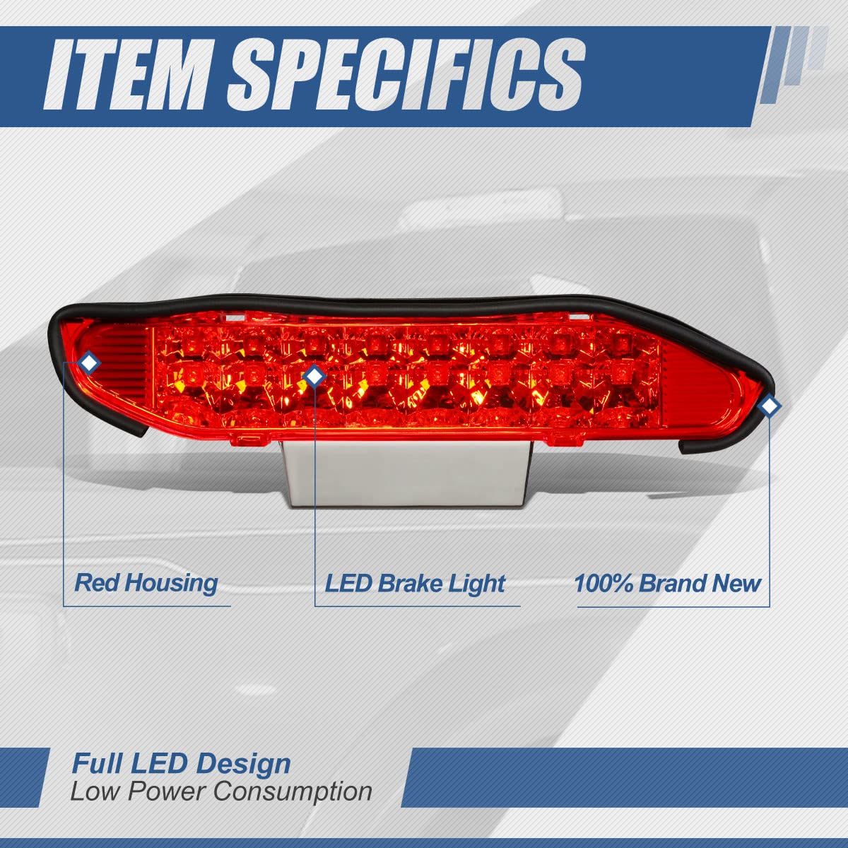 Q: What materials are used in the construction of the brake light?A: The LED third brake light features a durable polycarbonate lens with a free-form reflector, ensuring longevity and resistance to weather elements.