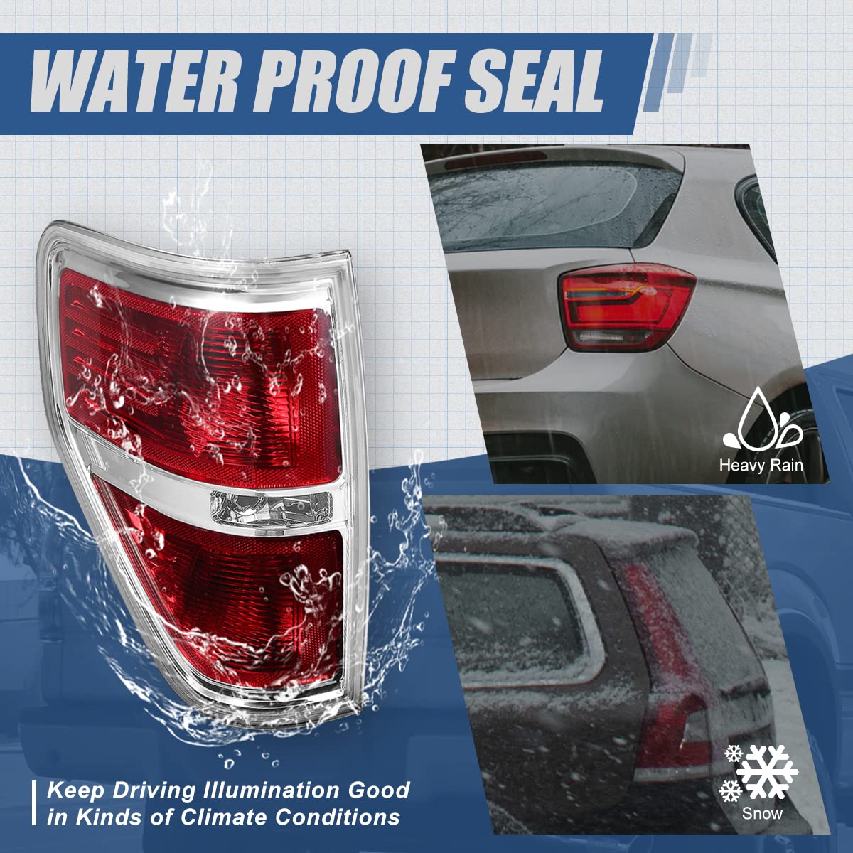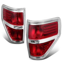 Auto Dynasty Factory Style Rear Tail Lights Brake Lamps Compatible With Ford F-150 09-14, Driver Left Side, Chrome Trim Red Lens