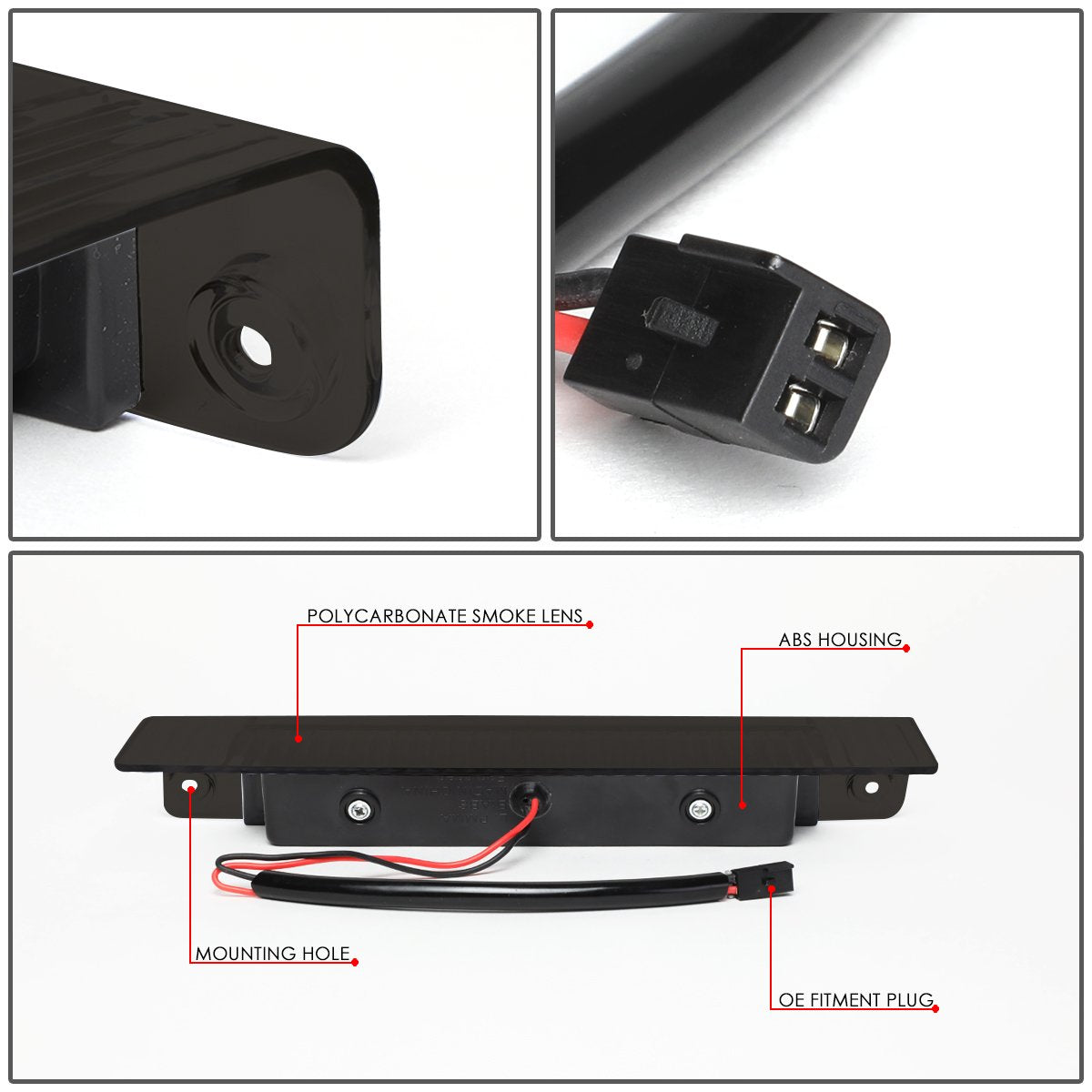 Q: What is the installation process for the LED third brake light?A: The installation of the Auto Dynasty LED third brake light is designed for plug-and-play operation, utilizing existing bolt holes for a straightforward installation without the need for modifications.