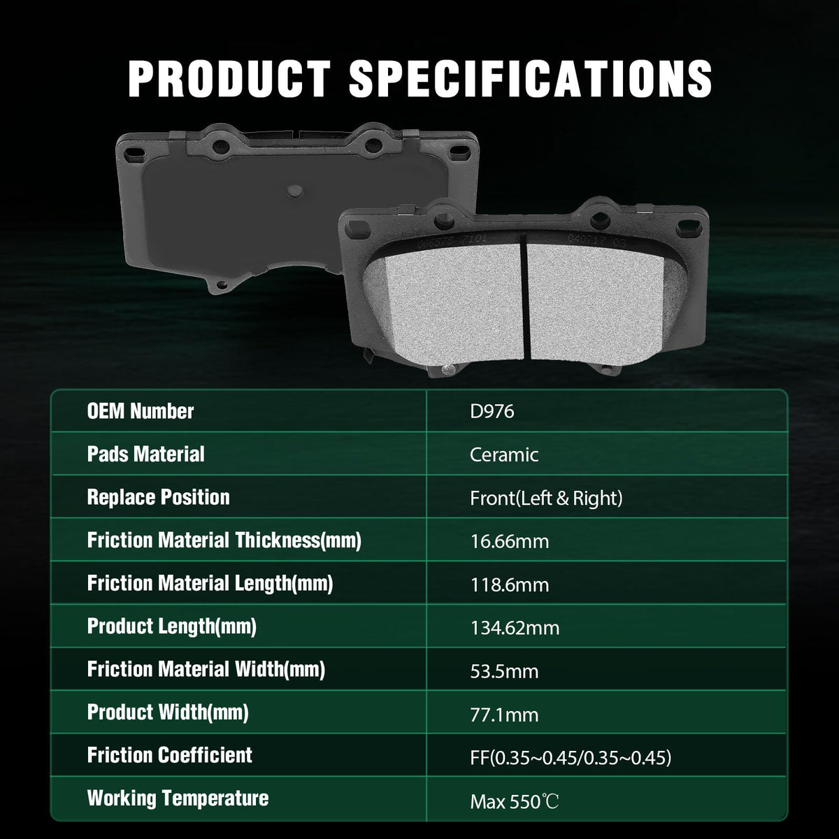 Automuto 4Pcs Front Ceramic Disc Brake Pads Set D976 For Lexus Gx460 Gx470 For Toyota For 4Runner Fj For Cruiser For Sequoia For
