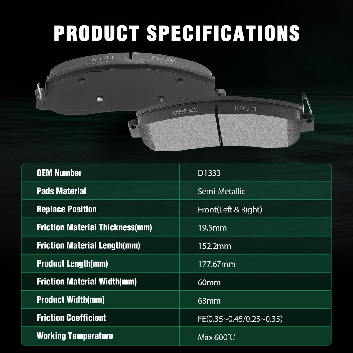 Automuto 4Pcs Front Semi-Metallic Disc Brake Pads Set D1333 For Ford For F-250 Super Duty 2008-2013, For Ford For F-350 Super Du