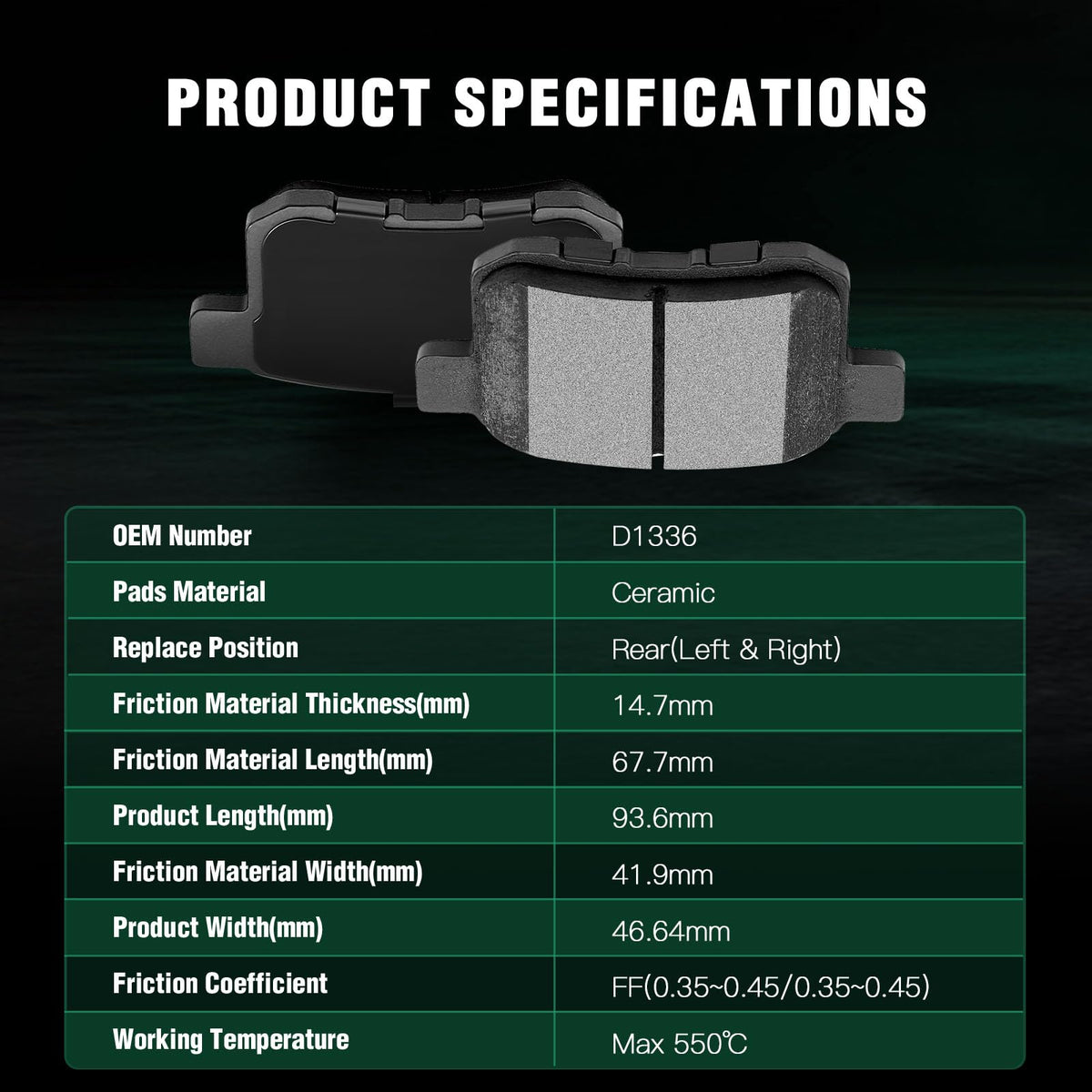 Automuto 4Pcs Rear Ceramic Disc Brake Pads Set D1336 For Acura Tsx 2009-2014,For Honda For Accord 2008-2017