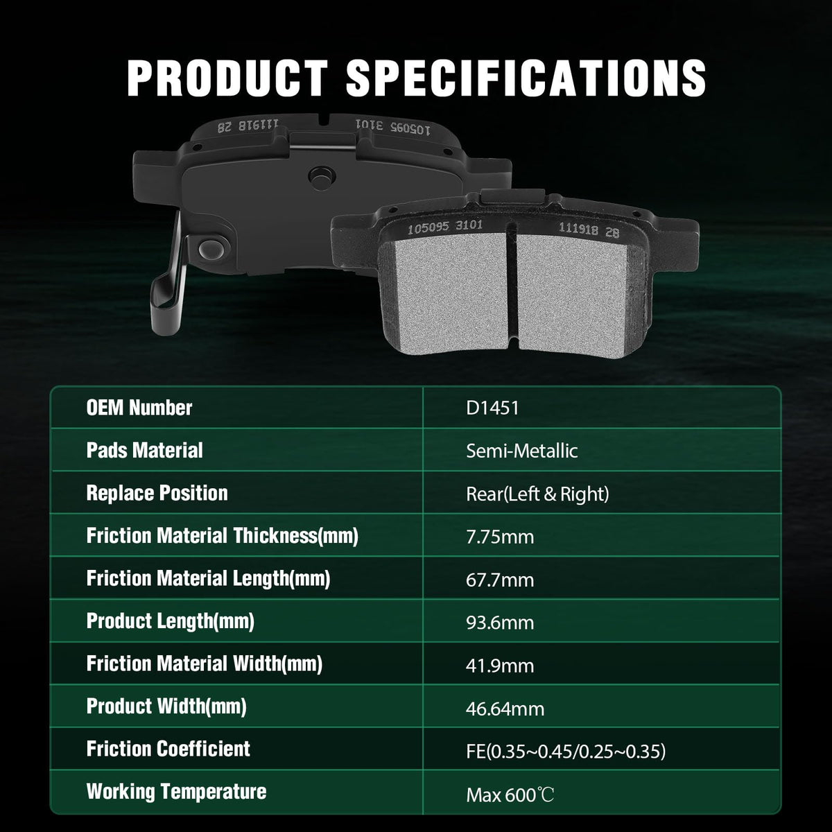Automuto 4Pcs Rear Semi-Metallic Disc Brake Pads Set D1451 For Acura Tsx 2009-2010,For Honda For Accord 2008-2012