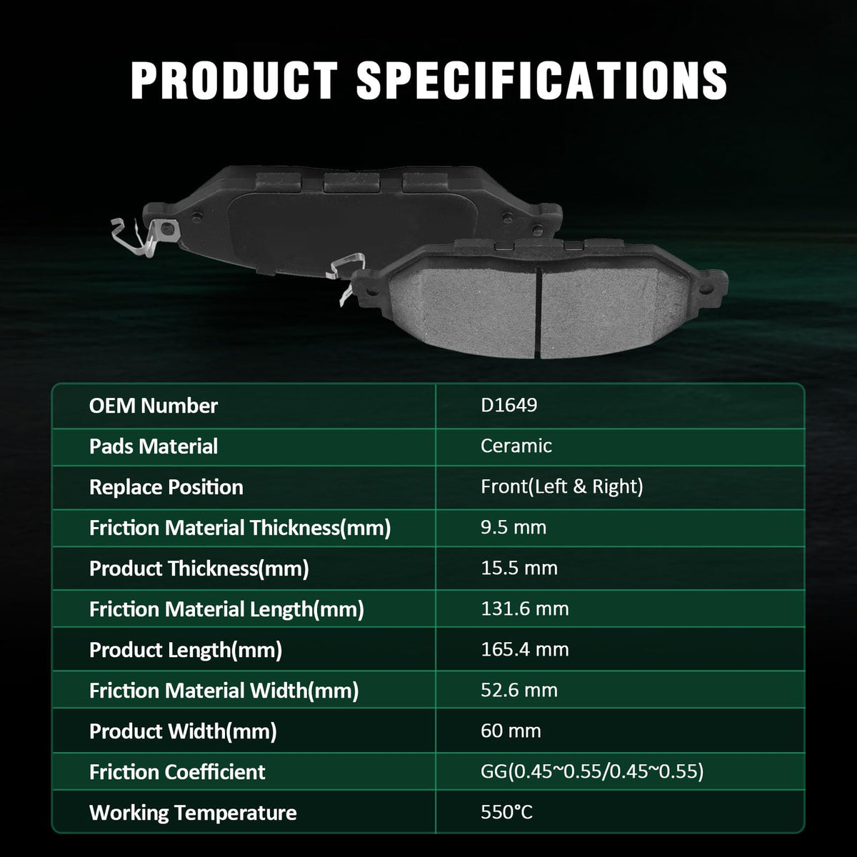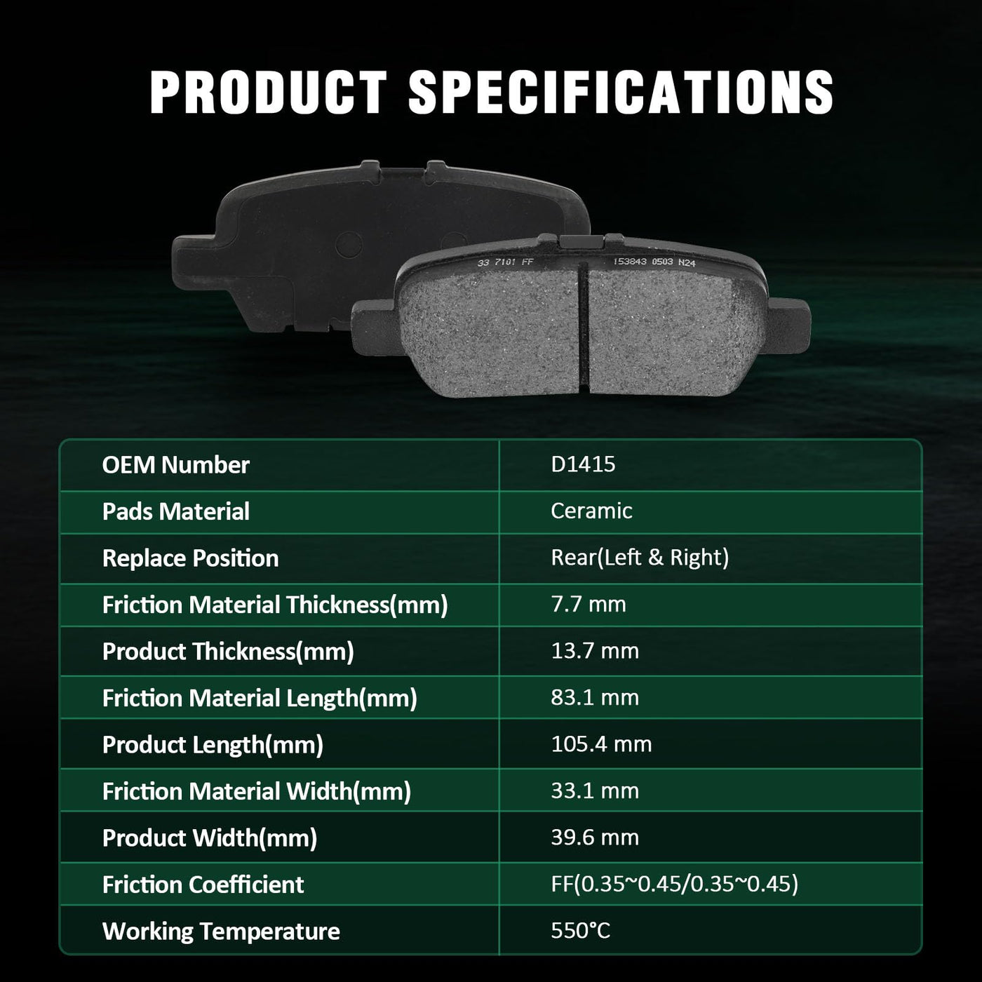 Automuto 8Pcs Front & Rear Ceramic Disc Brake Pads Set D1649 D1415 For Infiniti Jx35 2013,For Infiniti Qx60 2014-2019,For Nissan