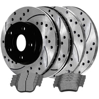 Bundle Contains: 2 Ceramic Brake Pad Sets 4 Drilled And Slotted Performance Rotors