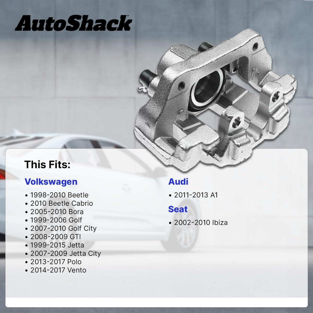 Q: What vehicles are compatible with the AutoShack Front Brake Calipers Assembly?A: The AutoShack Front Brake Calipers Assembly is compatible with various VW models, including the Jetta from 1998-2010, Beetle from 1999-2006, Golf from 1999-2005, and Jetta City from 2007-2010. It is essential to use Amazon's vehicle fitment tool to confirm compatibility with your specific vehicle.
