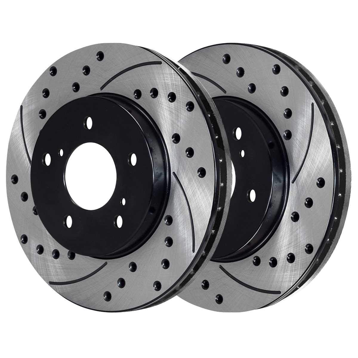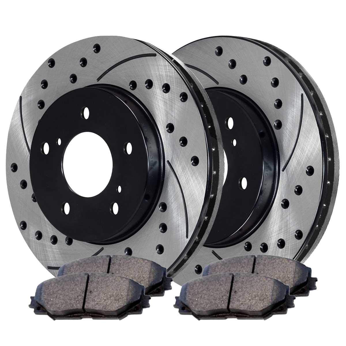 Autoshack Front Drilled And Slotted Brake Kit Rotors Black And Ceramic Pads Pair Of 2 Driver And Passenger Side Replacement For