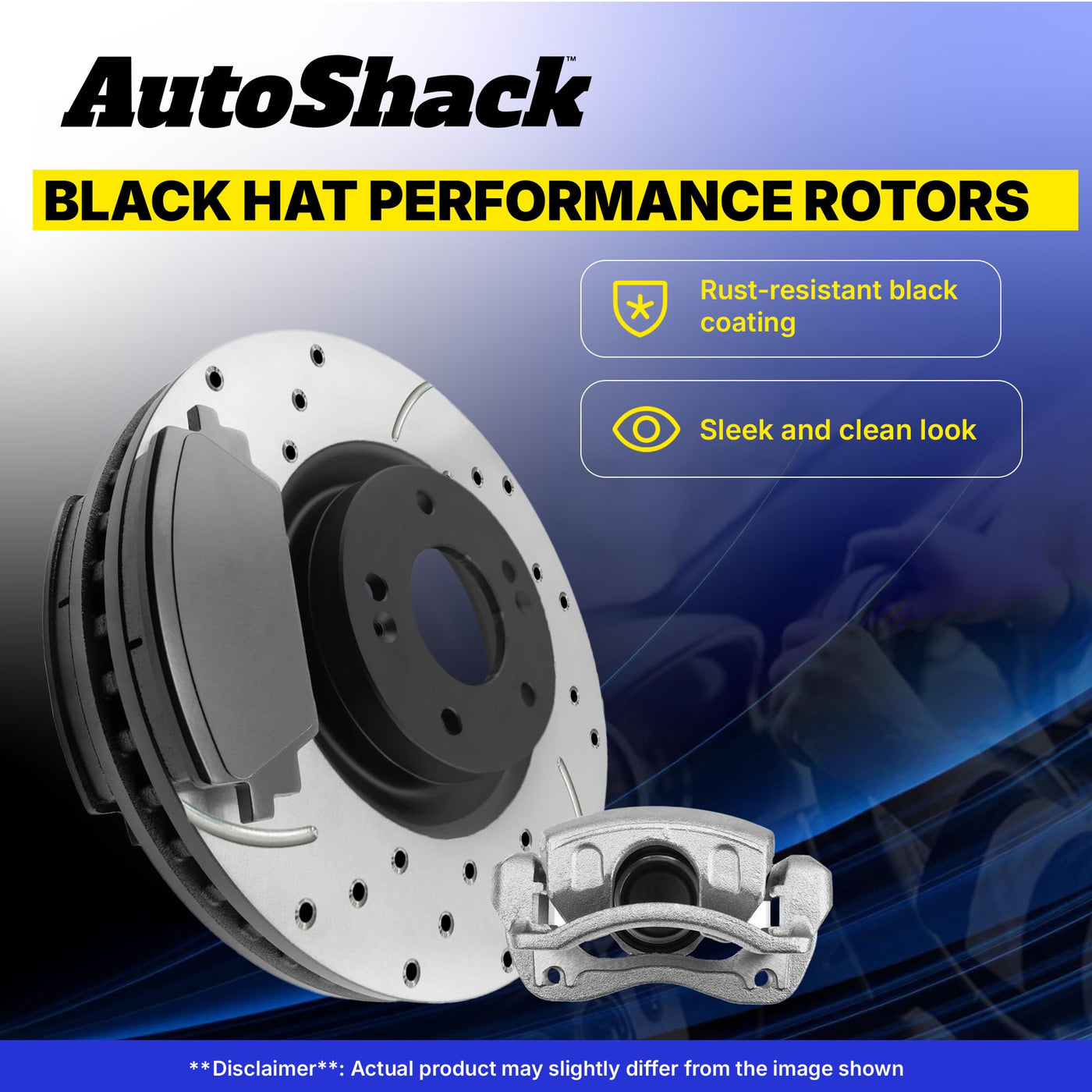 Autoshack Front Drilled And Slotted Brake Rotors Black Calipers And Ceramic Pads Kit Set Driver And Passenger Side Replacement For Chevrolet Silverado 1500 Tahoe Cadillac Escalade Ext 4Wd Brkpkg005294