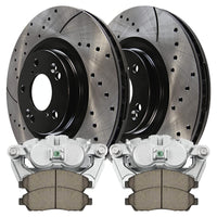 Autoshack Front Drilled And Slotted Brake Rotors Calipers And Ceramic Pads Kit Set Driver And Passenger Side Replacement For 2009 2010 2011 2012 2013 2014 2015 Honda Pilot 3.5L V6 Awd Fwd Bcpkg0673