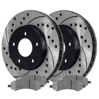 Bundle Contains: 1 Performance Ceramic Brake Pad Set 2 Drilled And Slotted Performance Rotors