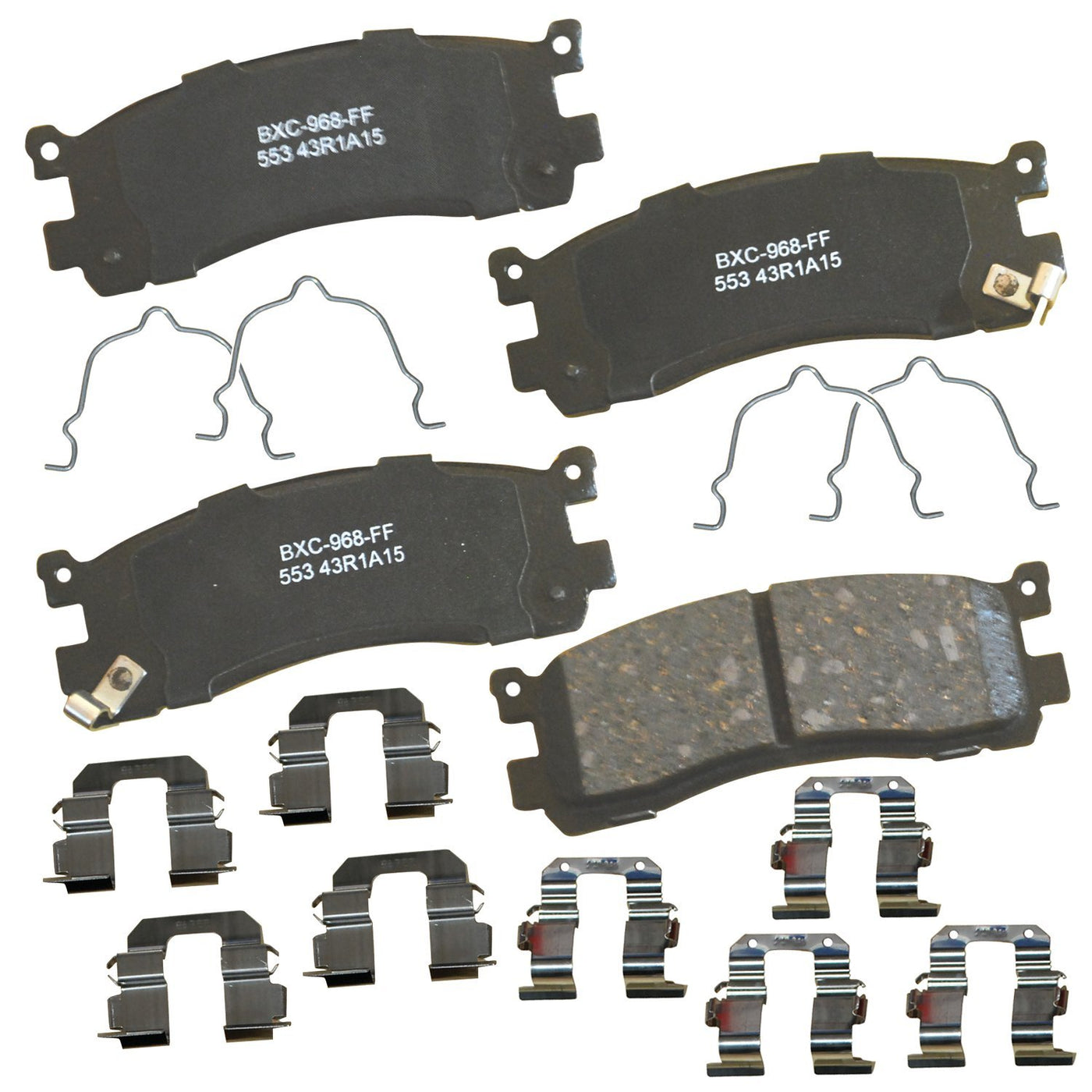 Upgrade your ride with Bendix Premium Ceramic replacement brake pads. Designed to match the fit, form, and function of the original equipment for a seamless replacement. Perfect for daily drivers, these brake pads provide optimal performance and a smooth ride.