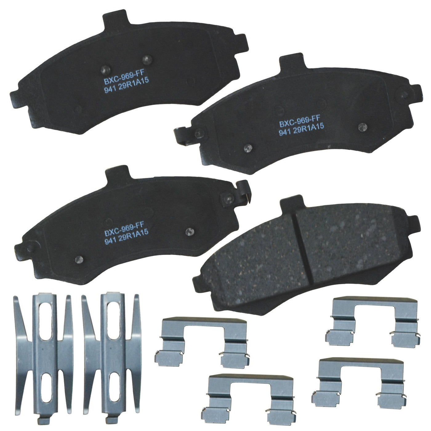 Q: What materials are used in Bendix Premium SBC941 brake pads?A: These brake pads are made from high-quality ceramic materials, which provide durability, resistance to wear and corrosion, and extend the lifespan of the brake pads.