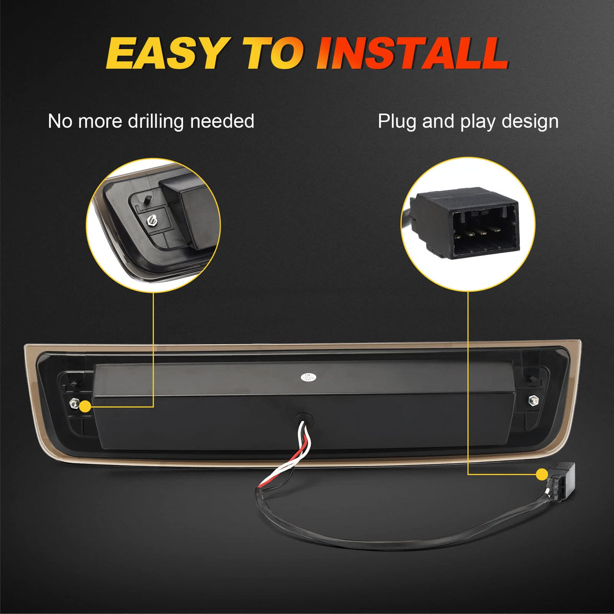 LED Third Brake Light Smoked Lens fit for 2009 2010 2011 2012 2013 2014 2015 2016 2017 D-odge Ram 1500 2500 3500, 3rd Brake Light Assembly Roof White Cargo Light Red High Mount Lamp