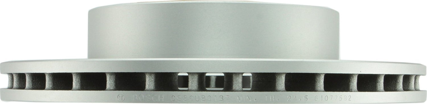 Product DescriptionBosch QuietCast is a name you can depend on, with minimum tolerance levels and innovative materials that ensure the very highest quality and brake judder, noise, vibration, and harshness free operation. All QuietCast rotors are factory mill precision balanced, which disperses the weight evenly, and allows for smooth, safe stops with no pedal pulsation. Performance is ensured by OEM style vane configurations that provide more efficient heat dissipation, reduced vibration for quieter operation, and extended rotor life. Aluminum/Zinc coating protection prevents rust and corrosion, extending the life of the rotor while providing a clean look for today's open wheels. OEM style ABS tone rings (on required applications) provide trouble free operation of Antilock Brake and Traction Control systems. Every Bosch QuietCast rotor features an engraved discard thickness, that lets you know when the rotor has reached its useful life, and an on-the-part Bosch brand name, so you can be confident you are receiving an authentic Bosch product.Amazon.comBosch Brake RotorsToday, one of every three Asian, Domestic, and European vehicles on the road in North America include Bosch braking components. That is because Bosch has been a key player in the braking industry since its first brake system design patent in 1936. Bosch introduced Antilock Braking technology to the market, as well as Electronic Stability Control systems. Now Bosch brings years of Original Equipment braking experience to the aftermarket with Bosch QuietCast Premium Disc Brake Rotors.Bosch QuietCast Premium Disc Brake Rotors is a name you can depend on. Minimum tolerance levels and innovative materials ensure the very highest quality and prevent brake judder, noise, vibration, and harshness. Rely on the experience that Bosch brings with over 70 years of Original Equipment brake manufacturing. QuietCast - The Science Behind the SilenceBosch QuietCast Brake Rotors utilize vehicle specific castings. The heat flow casting process produces superior G3000, GG20, GG15, and HC (high carbon) casting. Bosch casting provide strength and durability not found in competitive products. While competitors may provide a low cost product, their casting may crack and may have poor durability. Bosch QuietCast is designed to provide consistent, safe, and long lasting performance. Bosch QuietCast Features Homogeneous heat flow Superior heat dissipation Safe, consistent performance Superior noise dampening characteristics Designed for long life Precision balanced: Insures smooth operations Industry low run-out and DTV specifications: Smooth pedal feel with no pulsation Heat flowing castings: Consistent wear for long life and quiet operation Original Equipment manufacturing style vane configuration: Heat reduction extends rotor life Factory engraved edge code: Allows proper identification and discard specification Premium clean look coating protection: Prevent rust and corrosion, part number specific ABS sensor rings included (on required applications): Trouble free ABS/TCS operation