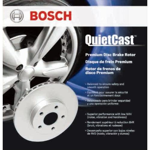 Product DescriptionBosch QuietCast is a name you can depend on, with minimum tolerance levels and innovative materials that ensure the very highest quality and brake judder, noise, vibration, and harshness free operation. All QuietCast rotors are factory mill precision balanced, which disperses the weight evenly, and allows for smooth, safe stops with no pedal pulsation. Performance is ensured by OEM style vane configurations that provide more efficient heat dissipation, reduced vibration for quieter operation, and extended rotor life. Aluminum/Zinc coating protection prevents rust and corrosion, extending the life of the rotor while providing a clean look for today's open wheels. OEM style ABS tone rings (on required applications) provide trouble free operation of Antilock Brake and Traction Control systems. Every Bosch QuietCast rotor features an engraved discard thickness, that lets you know when the rotor has reached its useful life, and an on-the-part Bosch brand name, so you can be confident you are receiving an authentic Bosch product.Amazon.comBosch Brake RotorsToday, one of every three Asian, Domestic, and European vehicles on the road in North America include Bosch braking components. That is because Bosch has been a key player in the braking industry since its first brake system design patent in 1936. Bosch introduced Antilock Braking technology to the market, as well as Electronic Stability Control systems. Now Bosch brings years of Original Equipment braking experience to the aftermarket with Bosch QuietCast Premium Disc Brake Rotors.Bosch QuietCast Premium Disc Brake Rotors is a name you can depend on. Minimum tolerance levels and innovative materials ensure the very highest quality and prevent brake judder, noise, vibration, and harshness. Rely on the experience that Bosch brings with over 70 years of Original Equipment brake manufacturing. QuietCast - The Science Behind the SilenceBosch QuietCast Brake Rotors utilize vehicle specific castings. The heat flow casting process produces superior G3000, GG20, GG15, and HC (high carbon) casting. Bosch casting provide strength and durability not found in competitive products. While competitors may provide a low cost product, their casting may crack and may have poor durability. Bosch QuietCast is designed to provide consistent, safe, and long lasting performance. Bosch QuietCast Features Homogeneous heat flow Superior heat dissipation Safe, consistent performance Superior noise dampening characteristics Designed for long life Precision balanced: Insures smooth operations Industry low run-out and DTV specifications: Smooth pedal feel with no pulsation Heat flowing castings: Consistent wear for long life and quiet operation Original Equipment manufacturing style vane configuration: Heat reduction extends rotor life Factory engraved edge code: Allows proper identification and discard specification Premium clean look coating protection: Prevent rust and corrosion, part number specific ABS sensor rings included (on required applications): Trouble free ABS/TCS operation