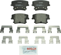 Amazon.comToday, one of every three Asian, Domestic and European vehicles on the road in North America includes Bosch braking components. Thats because Bosch has been a key player in the braking industry since applying for its first brake system design patent in 1936. Bosch introduced Antilock Braking technology to market, as well as Electronic Stability Control systems. Now Bosch brings over 70 years of OE braking expertise to the aftermarket with Bosch QuietCast Premium Disc Brake Pads. Quiet operation and reliable braking performanceQuietCast raises aftermarket brake pad technology to a whole new level. Employing the industrys best pre-attached, rubber core shims and Molded Shim Technology (on selected applications); QuietCast delivers the quiet operation you expect with the durability and long life that are the hallmarks of all Bosch products. Bosch is the name you can trust every time you put on the brakes. Engineered, Manufactured, Distributed and Backed by BoschBosch is closely involved in every step of the QuietCast process. From a worldwide R&D network with 2,500 associates and nine test tracks, to dedicated engineers that source and rigorously test all friction materials and formulations, QuietCast brake products are manufactured under the same exacting quality standards as OE components and systems. Industry-leading materials with Molded Shim TechnologyClick to view larger The Complete Brake Pad SolutionTheres more to value than just a good price. Value also includes quality, extensive coverage, reliable supply and manufacturer support. And thats just what you get with Bosch. The QuietCast Premium Disc Brake Pad program offers top quality, availability, competitive pricing and full coverage for all makes and models of Domestic, Asian and European automobiles, light trucks and SUVs. Formulations include platform-specific ceramic, semi-metallic and non-asbestos organic (NAO). The Science Behind the SilenceEvery Bosch QuietCast Disc Brake Pad is fitted with the industrys best pre-attached rubber core shim. This shim style is the most predominant type used by OE manufacturers and is exclusively offered by Bosch for the independent aftermarket.The laminated rubber-core shim is heat and pressure cured between two layers of steel (see Figure 1, opposite page). This process ensures the highest quality bonding of the rubber to steel resulting in lower noise, increased strength, and corrosion resistance. Sound vibrations pass through the friction material and backing plate, but are dissipated by the unique rubber core in the shim for remarkable noise dampening. About Molded Shim Technology (MST)At the time of pressing, heat, adhesive and pressure mold the multi-layer shim to the backing plate and friction material creating an integrally molded unit. The shim stays attached throughout the life of the pad; it wont walk or slide on the backing plate, providing maximum stability resulting in quieter shim performance over the life of the pad.Product DescriptionToday, one of every three Asian, Domestic, and European vehicles on the road in North America includes Bosch braking components. That's because Bosch has been a key player in the braking industry since applying for its first brake system design patent in 1936. The Bosch QuietCast line draws on this robust experience to deliver OE quality performance, industry-leading strength and durability, and exclusive innovations including Molded Shim Technology (MST). QuietCast pads feature the industry's best pre-attached OE style multilayer rubber core shims, ensuring the highest quality bond between rubber and steel, for lower noise, increased strength, and superior corrosion resistance. The proprietary Semi-Metallic friction material is meticulously engineered to achieve superior performance, exceptional stopping power, and quiet operation with low dust. Corrosion and rust resistant powder-coated backing plates deliver increased product life. OE style slots and chamfers ensure premium quality, fit, and function. Set includes pads for 1 axle (2 wheels), hardware kit (where available), and synthetic lubricant for reduced resistance on sliding contact points. Compatible with select vehicles (Note: vehicle trim level may affect fitment - verify specific vehicle fitment details with fit checker above).