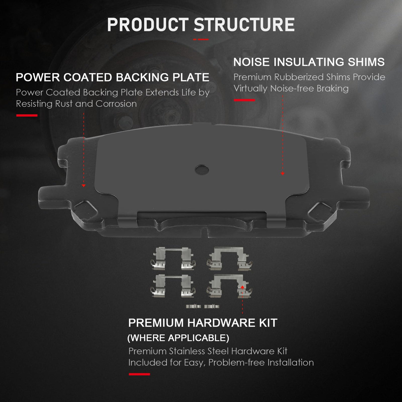 Cciyu D1005 D996 Front & Rear Semi-Metallic Disc Brake Pads Kit For Lexus Rx330 2004-2006,For Lexus Rx350 2007-2009,For Toyota F
