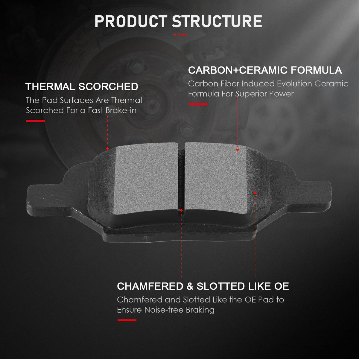 Cciyu D1033 Ceramic Rear Brake Pad Set For Chevy Cobalt,Hhr,For Malibu,07-10 For Pontiac G5,05-10 For Pontiac G6,06 For Pontiac