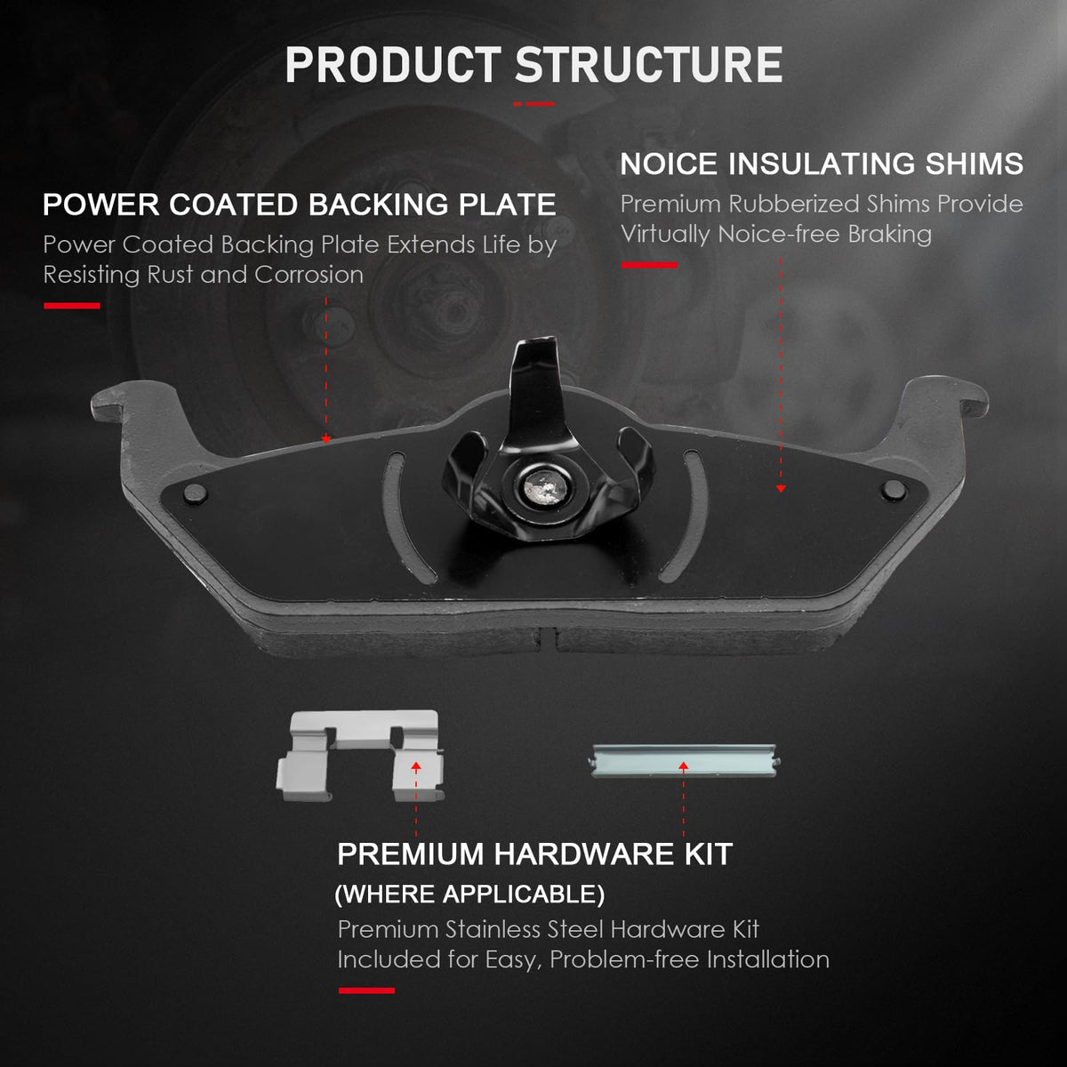 Cciyu D1083 D1012 8Pcs Front & Rear Ceramic Brake Pads Kits 2004-2011 For Ford For F-150, 2006-2008 For Lincoln Mark Lt