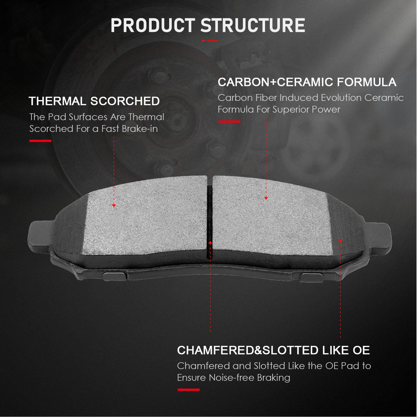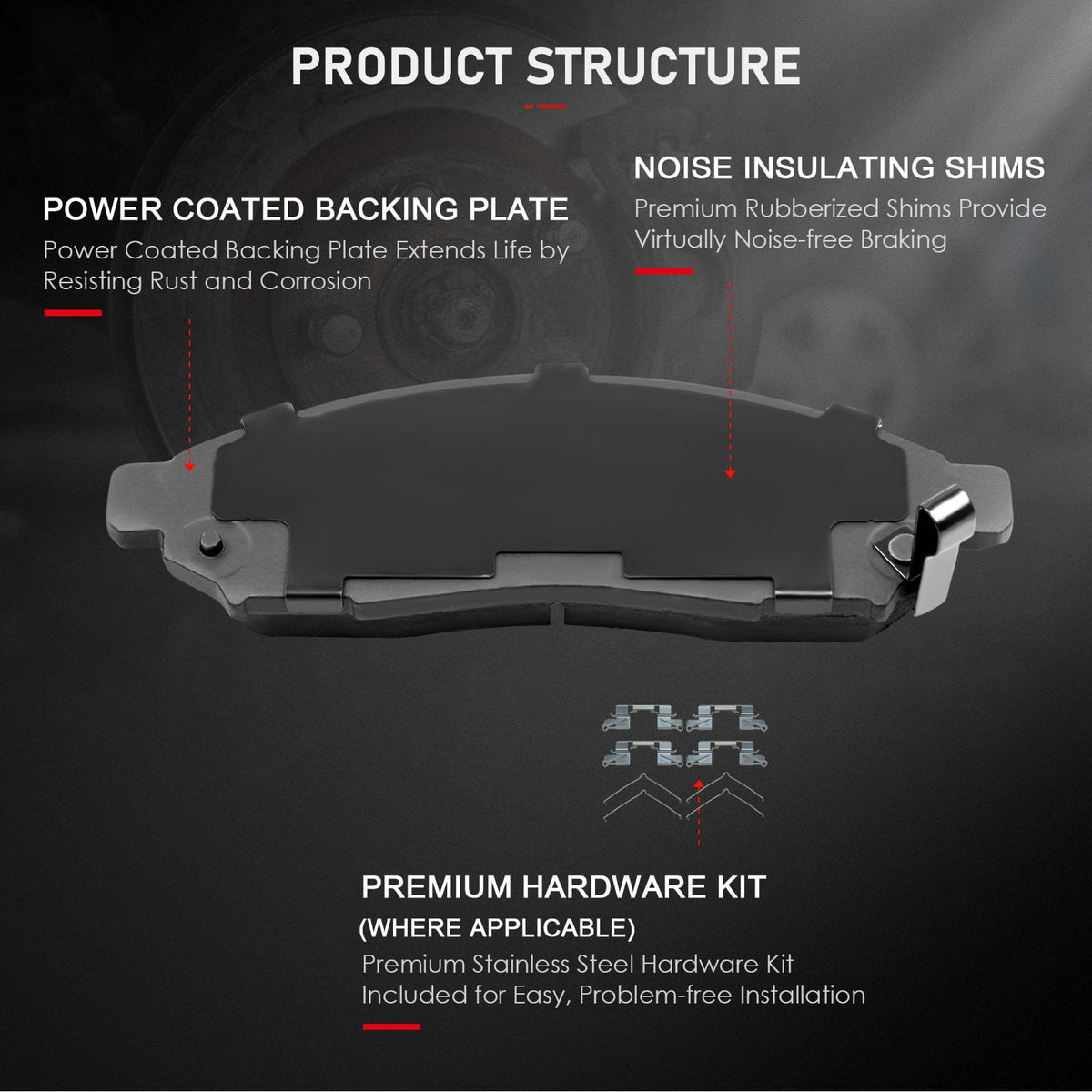 Cciyu D1094 Front Semi-Metallic Disc Brake Pads Kit - 4Pcs For Nissan Frontier 2005-2019, Pathfinder 2005-2012, Xterra 2005-2015