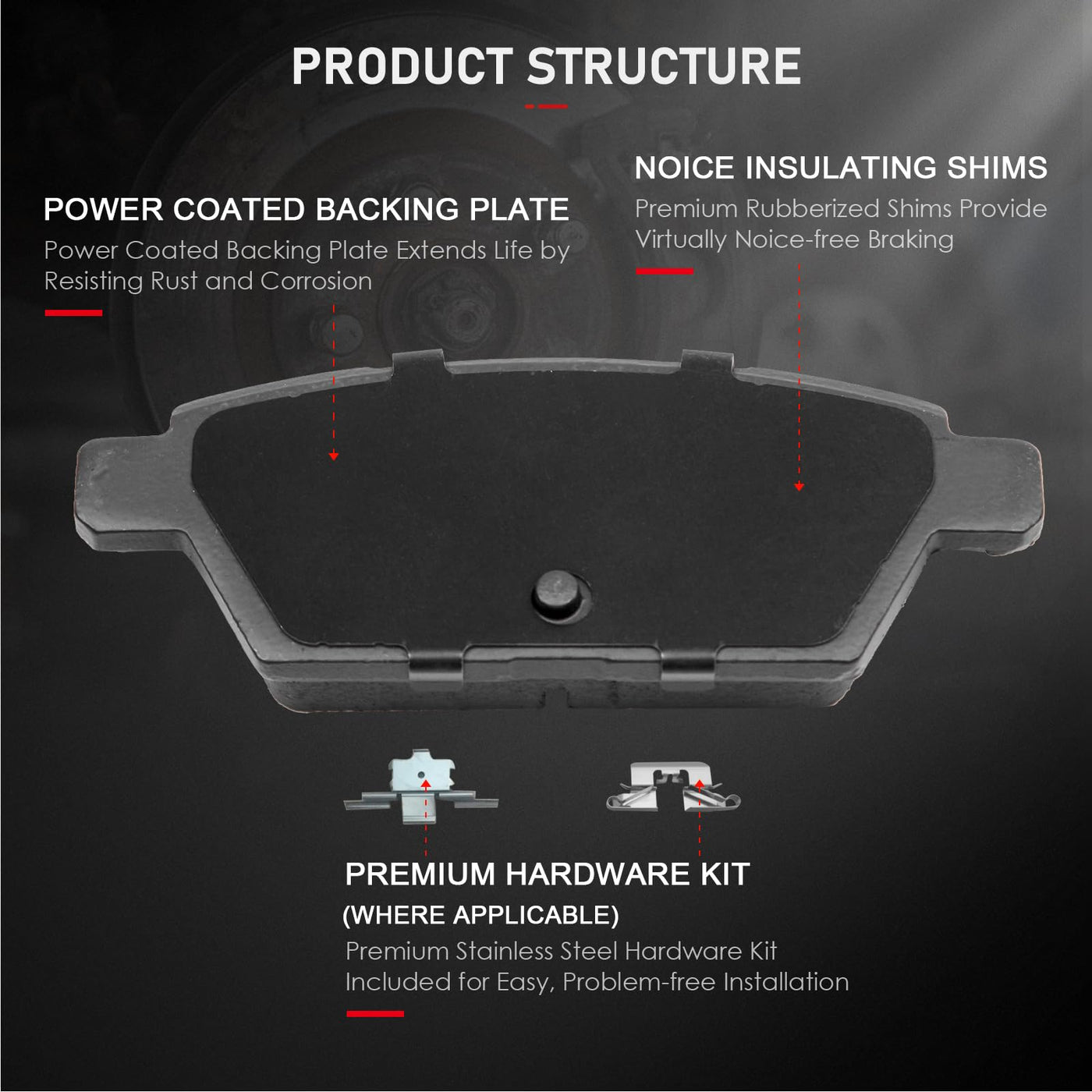 Cciyu D1164 D1161 Ceramic Front Rear Brake Pad Set Fit For 2006-2012 For Ford Fusion,2007-2012 For Lincoln Mkz,2006 For Lincoln