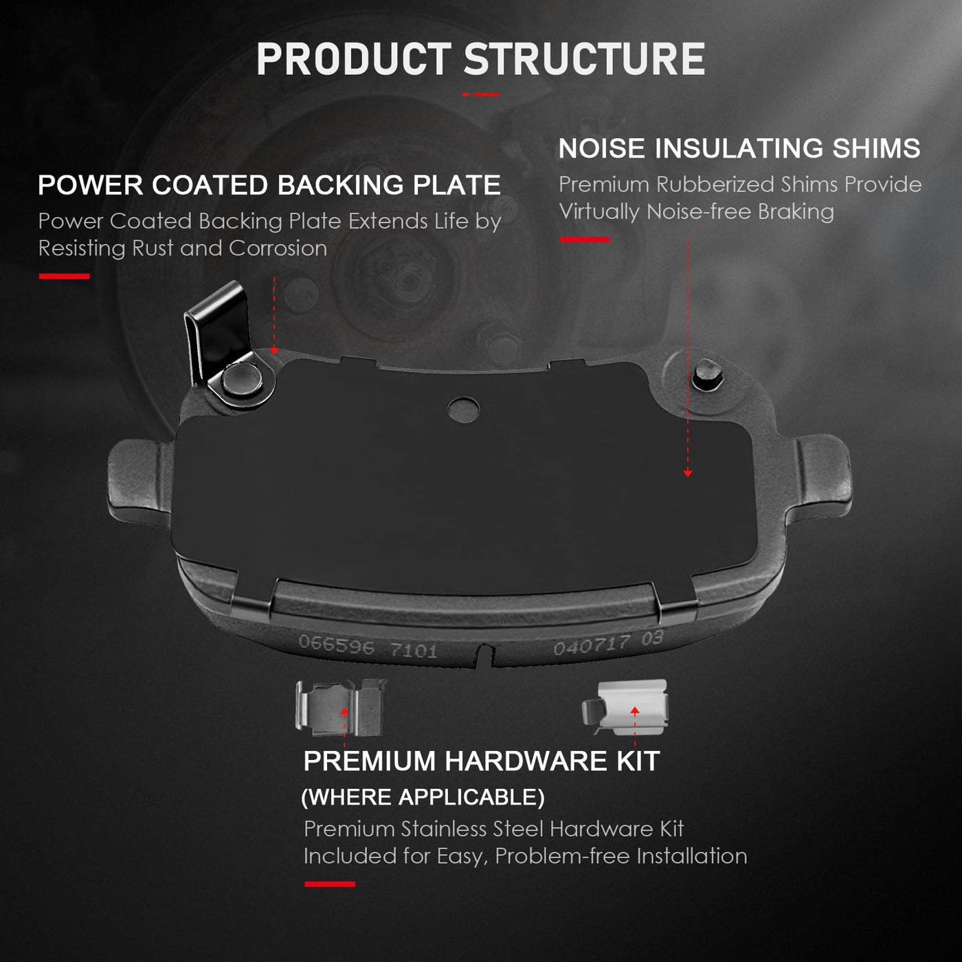 Cciyu D1327 D1326 Front & Rear Ceramic Brake Pads 2008-2012 For Chrysler Town & Country,2008-2012 For Dodge Grand Caravan,2009-2
