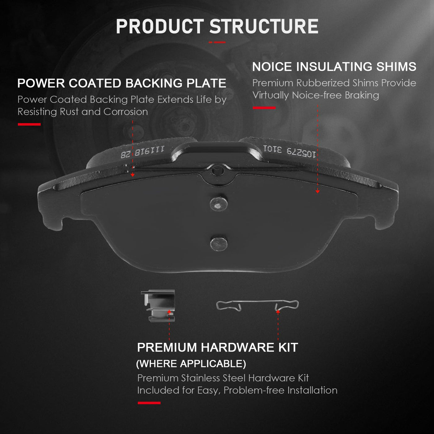Cciyu D1406 D1341 Front & Rear Semi-Metallic Disc Brake Pads Kit For Mercedes-Benz Glk250 2013-2015,For Mercedes-Benz Glk350 201
