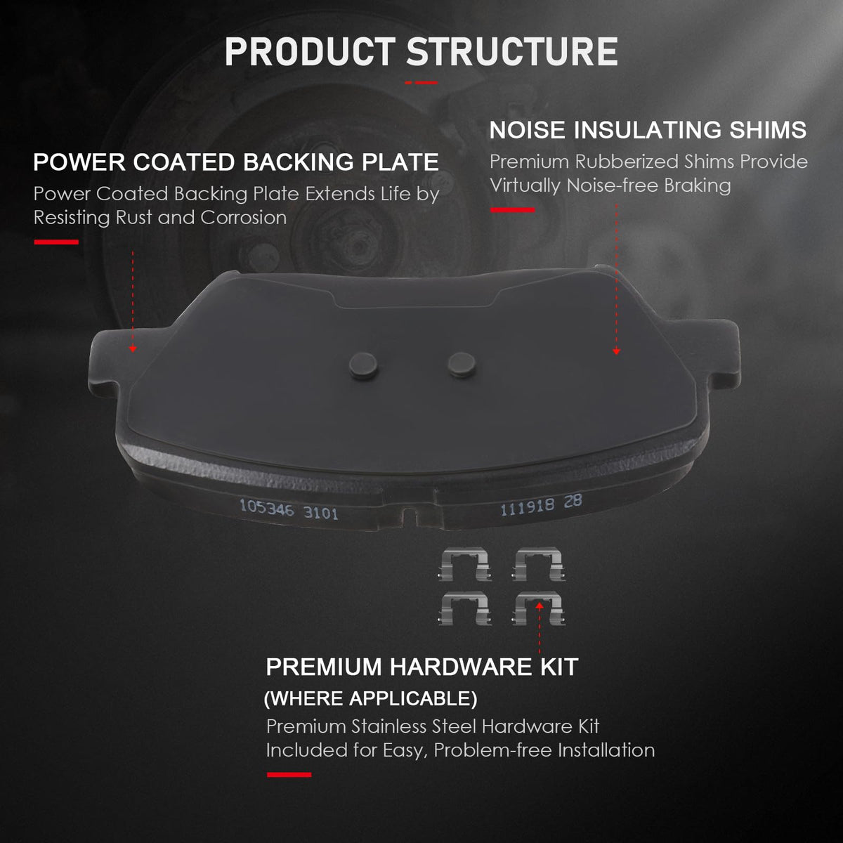 Cciyu D1432 D1439 Front & Rear Professional Ceramic Brake Pads Set Fit For 2010-2012 For Hyundai Santa Fe,2013-2014 For Hyundai