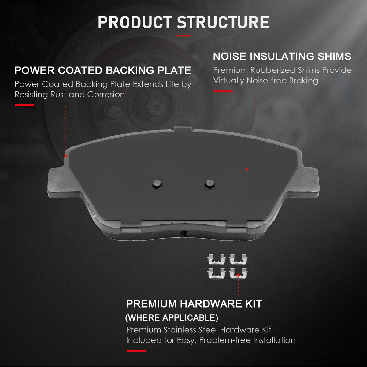 Cciyu D1444 Front Ceramic Disc Brake Pads Kit For Hyundai Sonata 2011-2014,For Kia Optima 2011-2012 2015 4Pcs