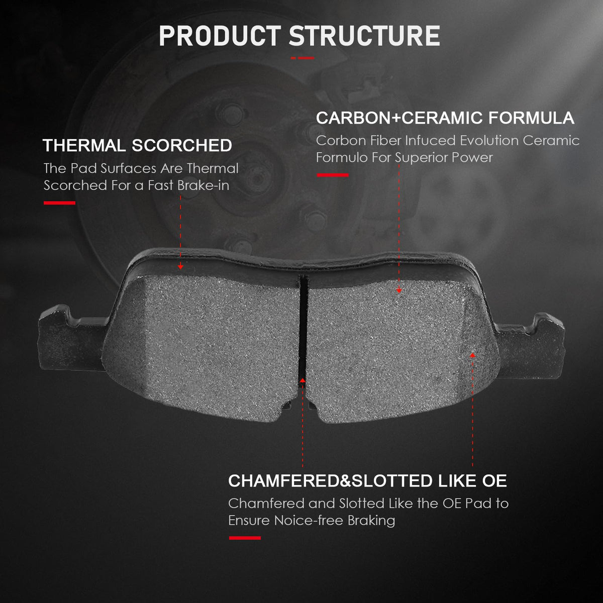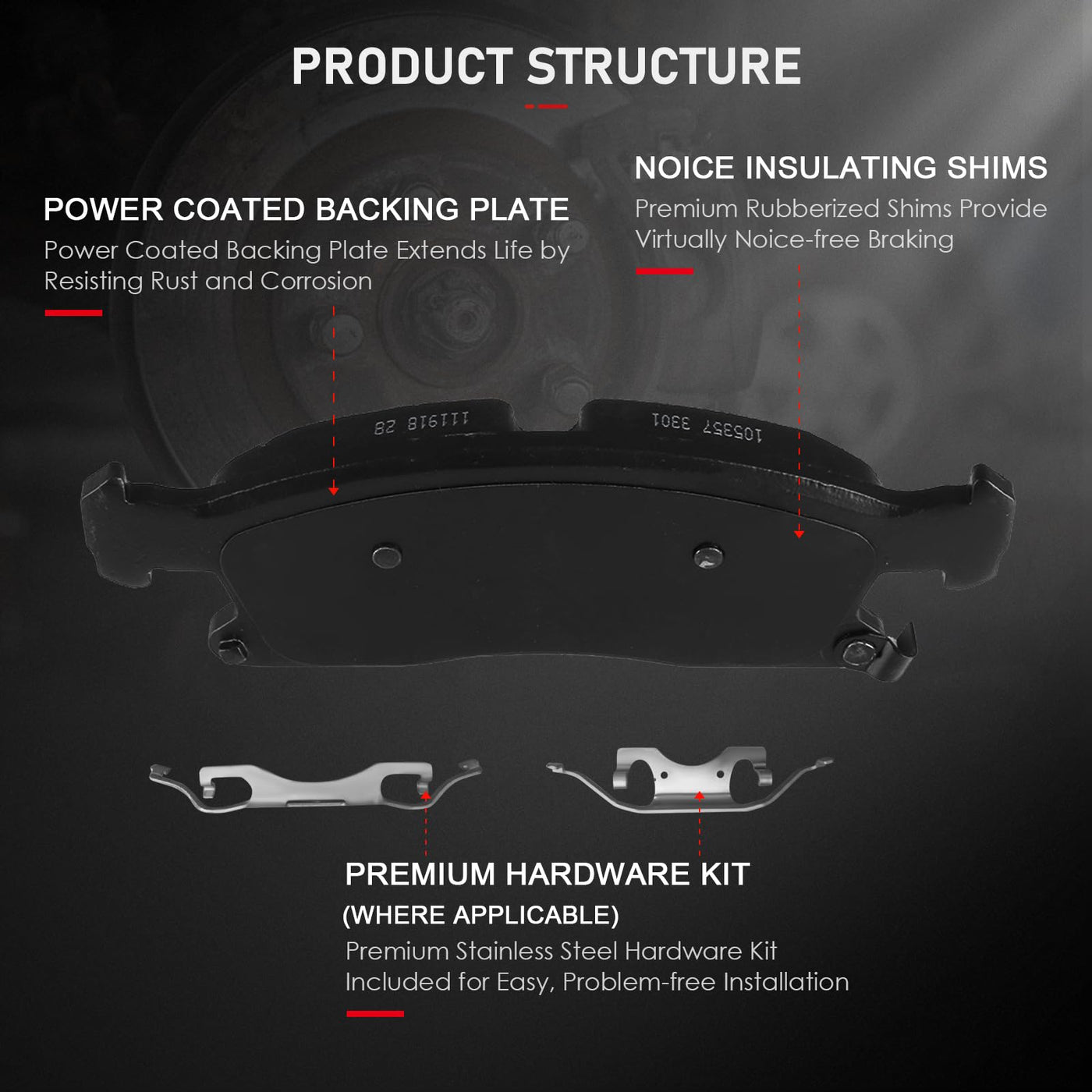 Cciyu D1455 D1498 8Pcs Front & Rear Ceramic Brake Pads Kits 2011-2018 For Dodge Durango, 2011-2019 For Jeep Grand Cherokee