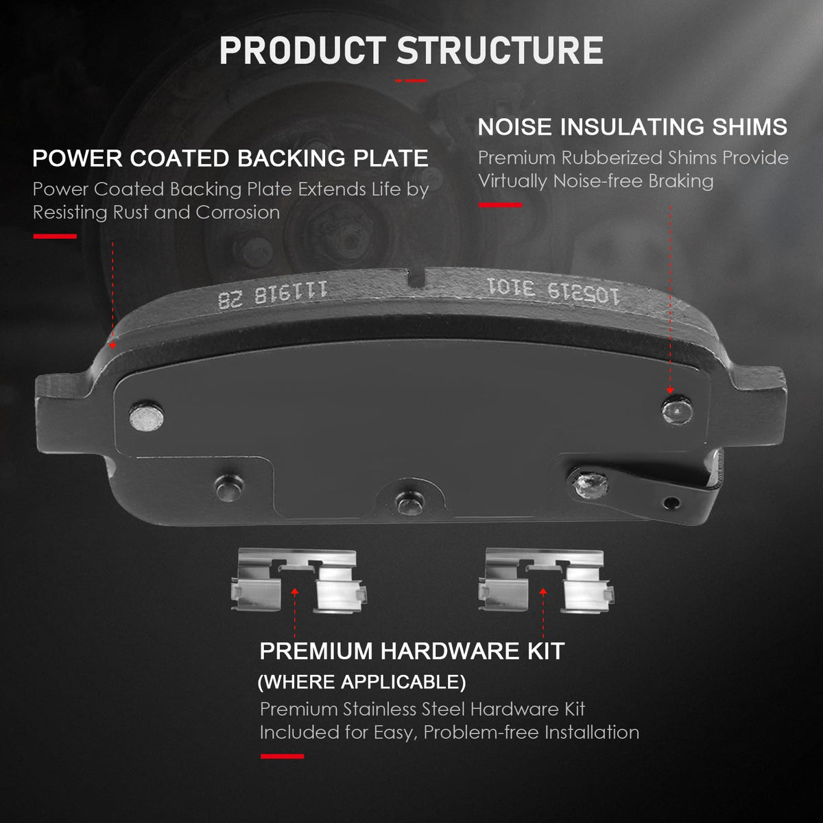 Cciyu D1468 Ceramic Rear Brake Pad Set Fit For Buick Cascada,Encore,Verano,For Cadillac Elr,Cruze,Cruze Limited,Orlando,13-16 Fo
