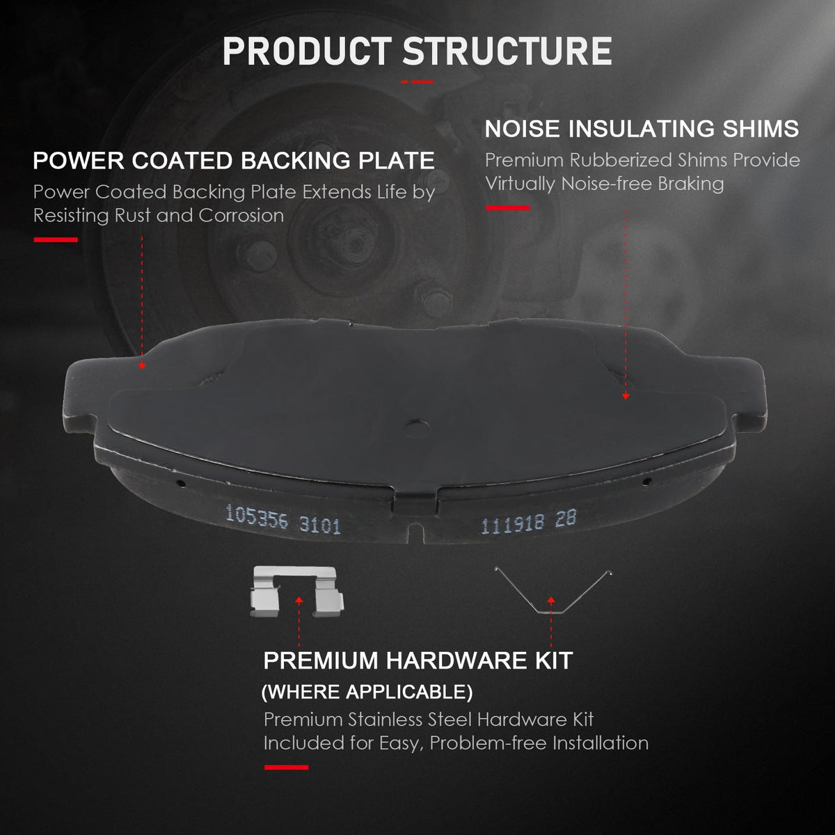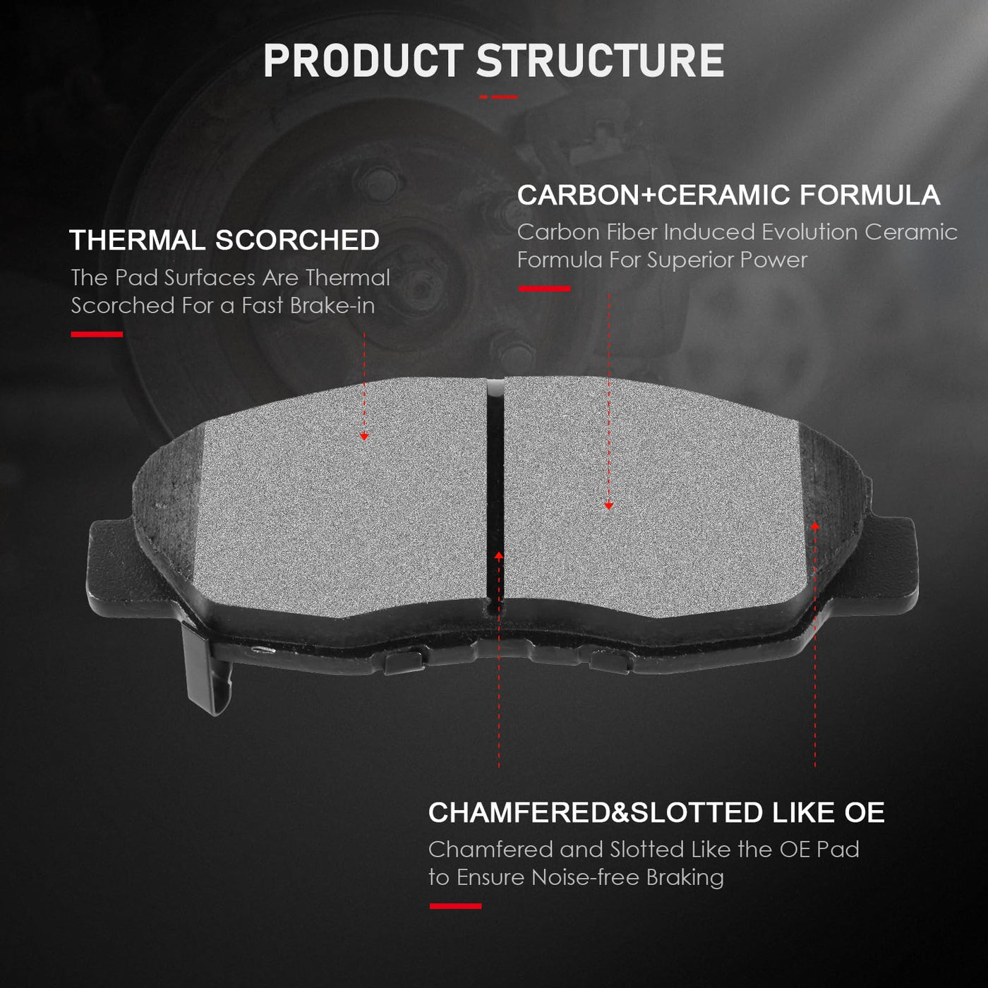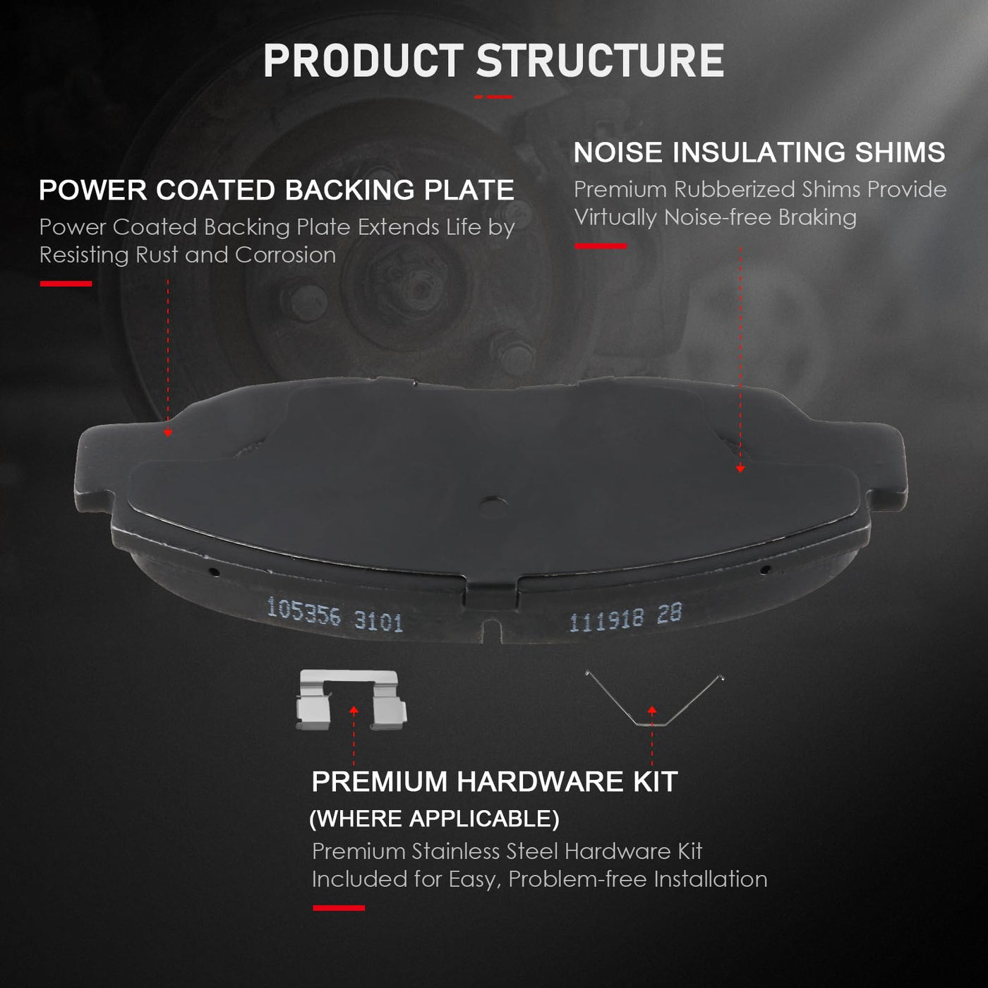 Cciyu D1578 Front Semi-Metallic Disc Brake Pads Kit For Honda Civic 2012-2015 4Pcs