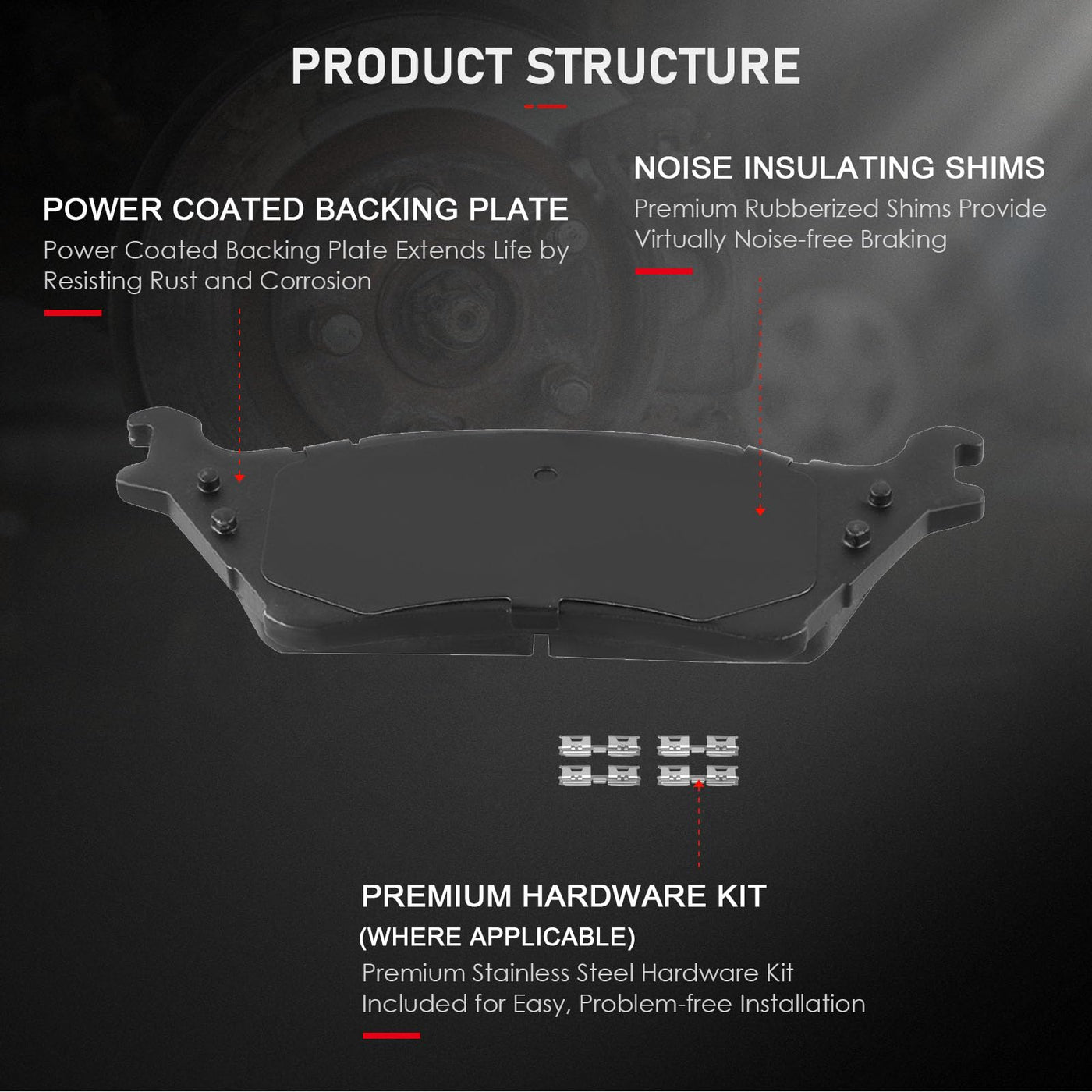 Cciyu D1602 Rear Semi-Metallic Disc Brake Pads Kit For Ford For F-150 2012-2020 4Pcs